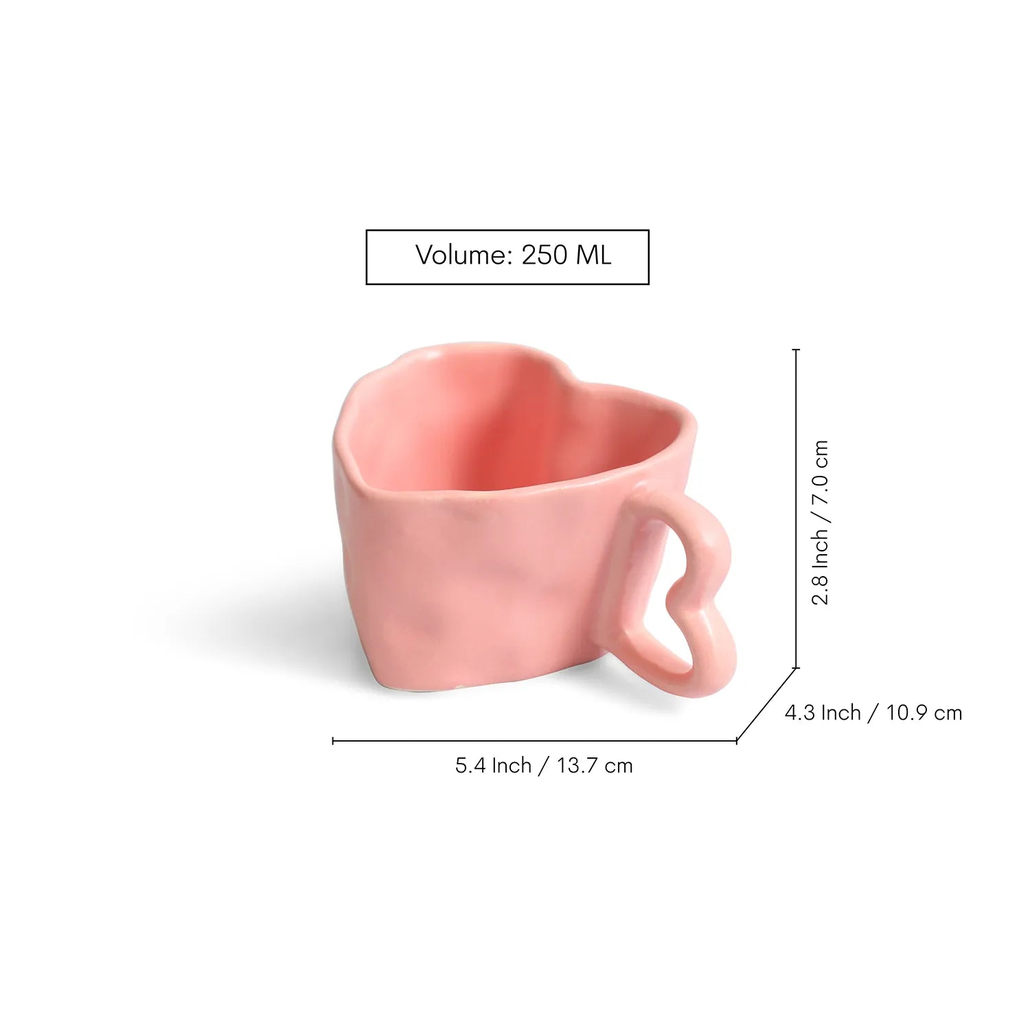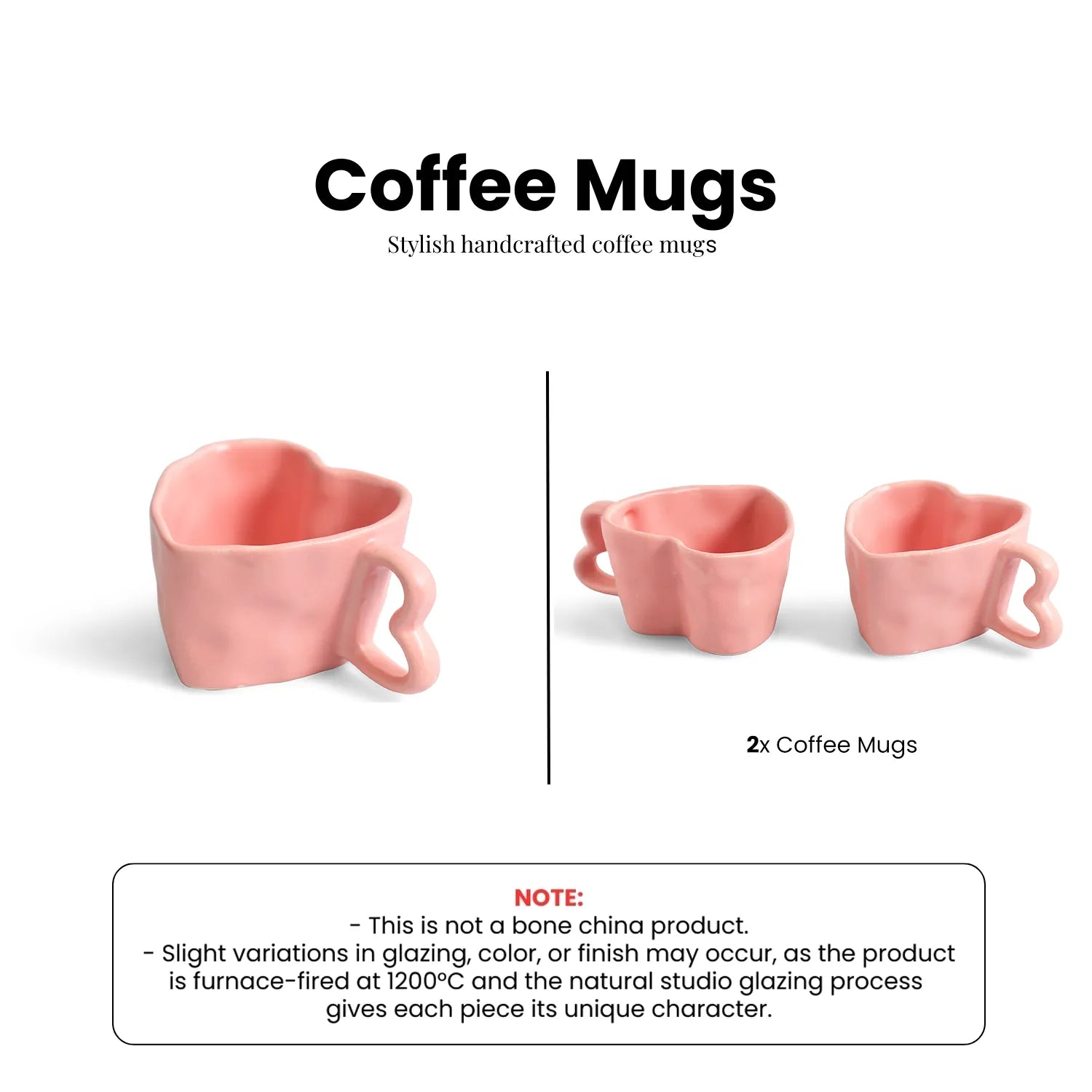 ExclusiveLane 'Heart Pink' Ceramic Tea And Coffee Mugs (Set of 2, 250 ML, Microwave Safe, Hand-Embossed)