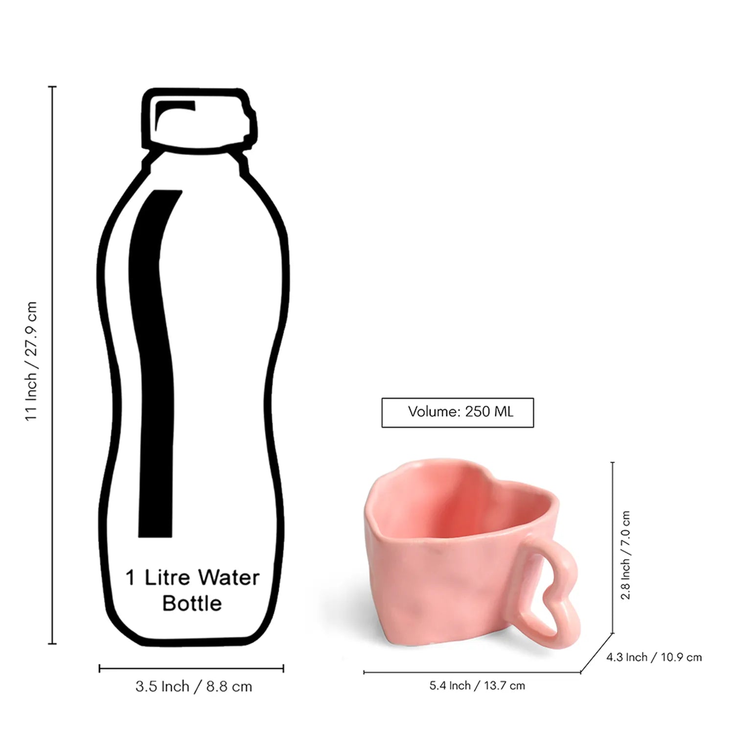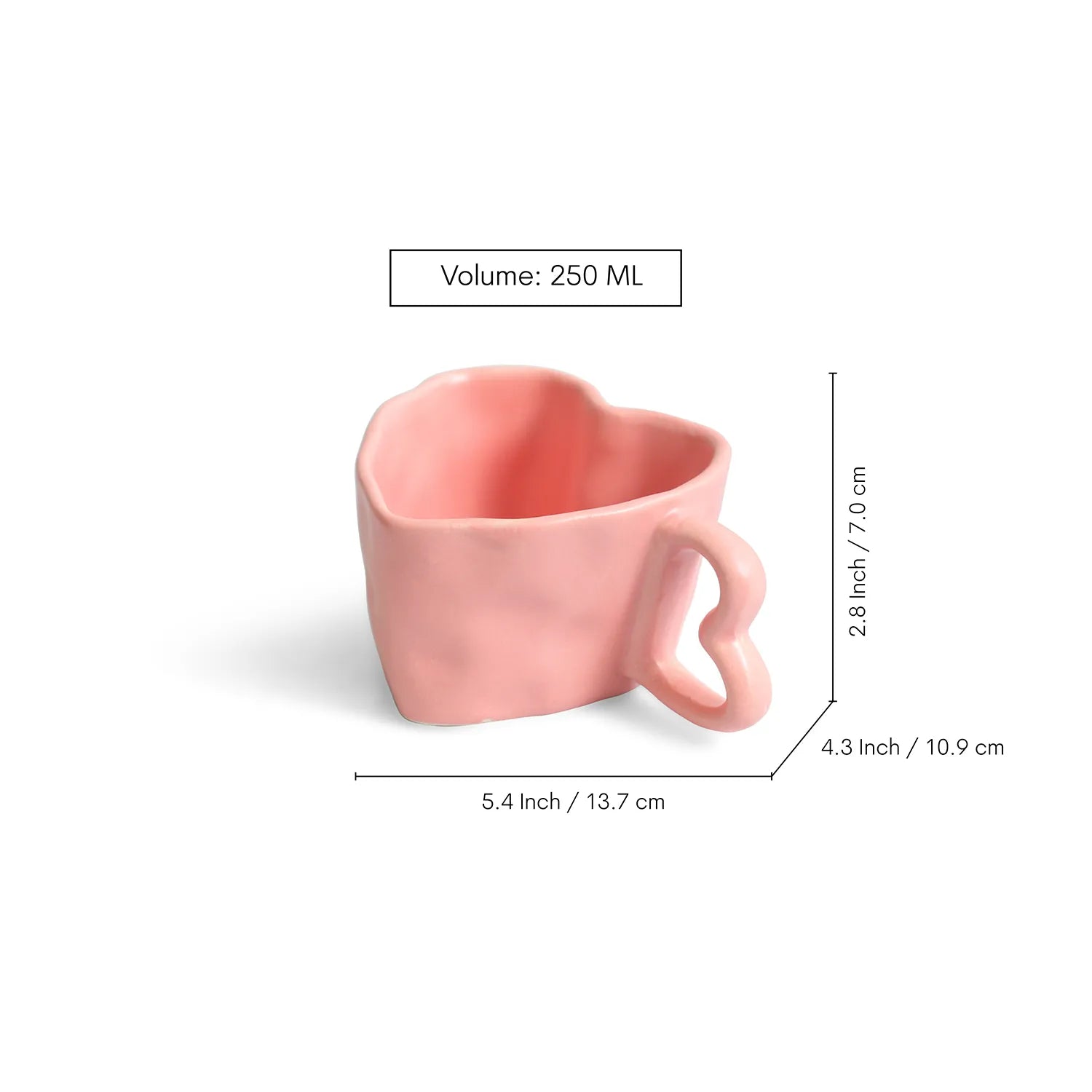 ExclusiveLane 'Heart Pink' Ceramic Tea And Coffee Mugs (Set of 4, 250 ML, Microwave Safe, Hand-Embossed)