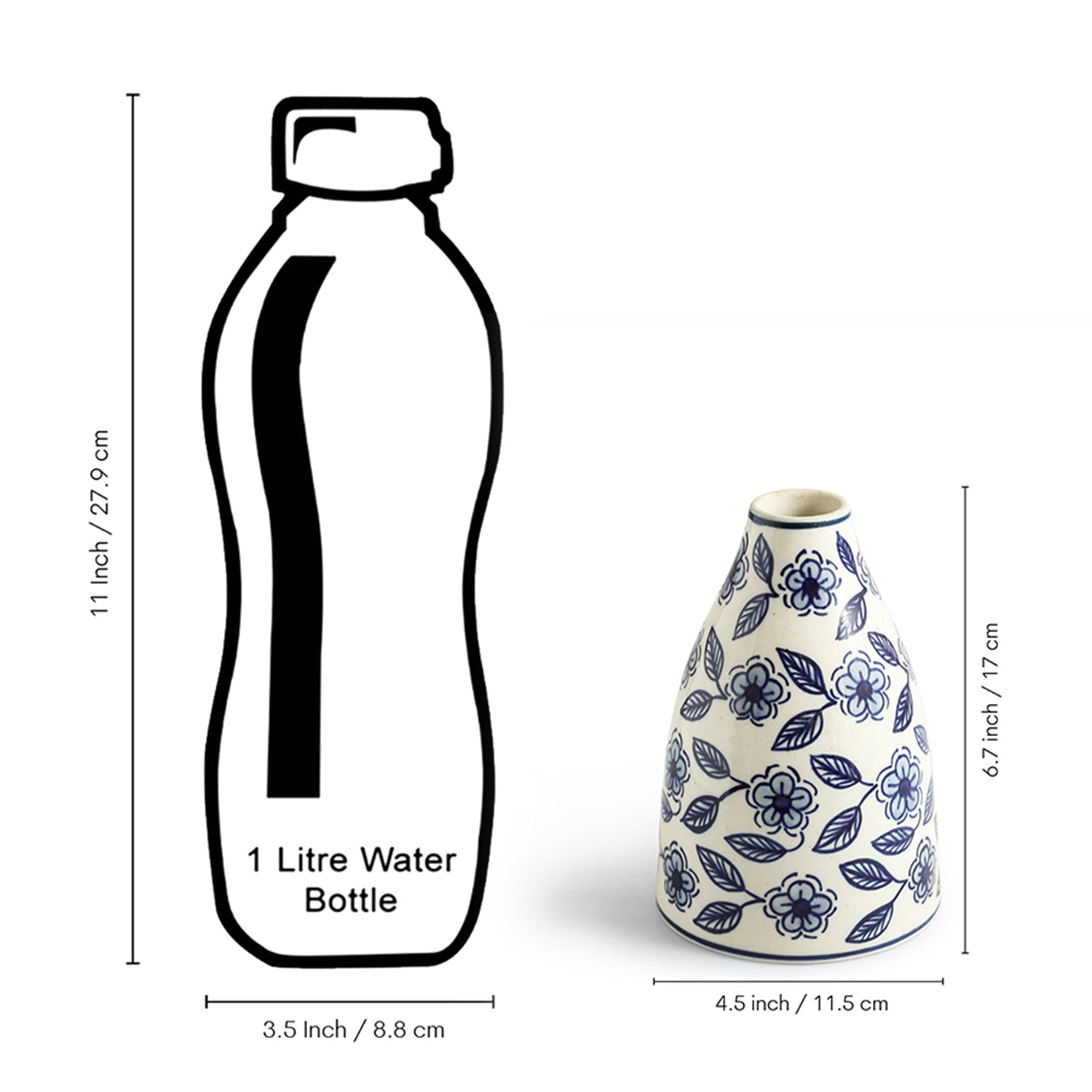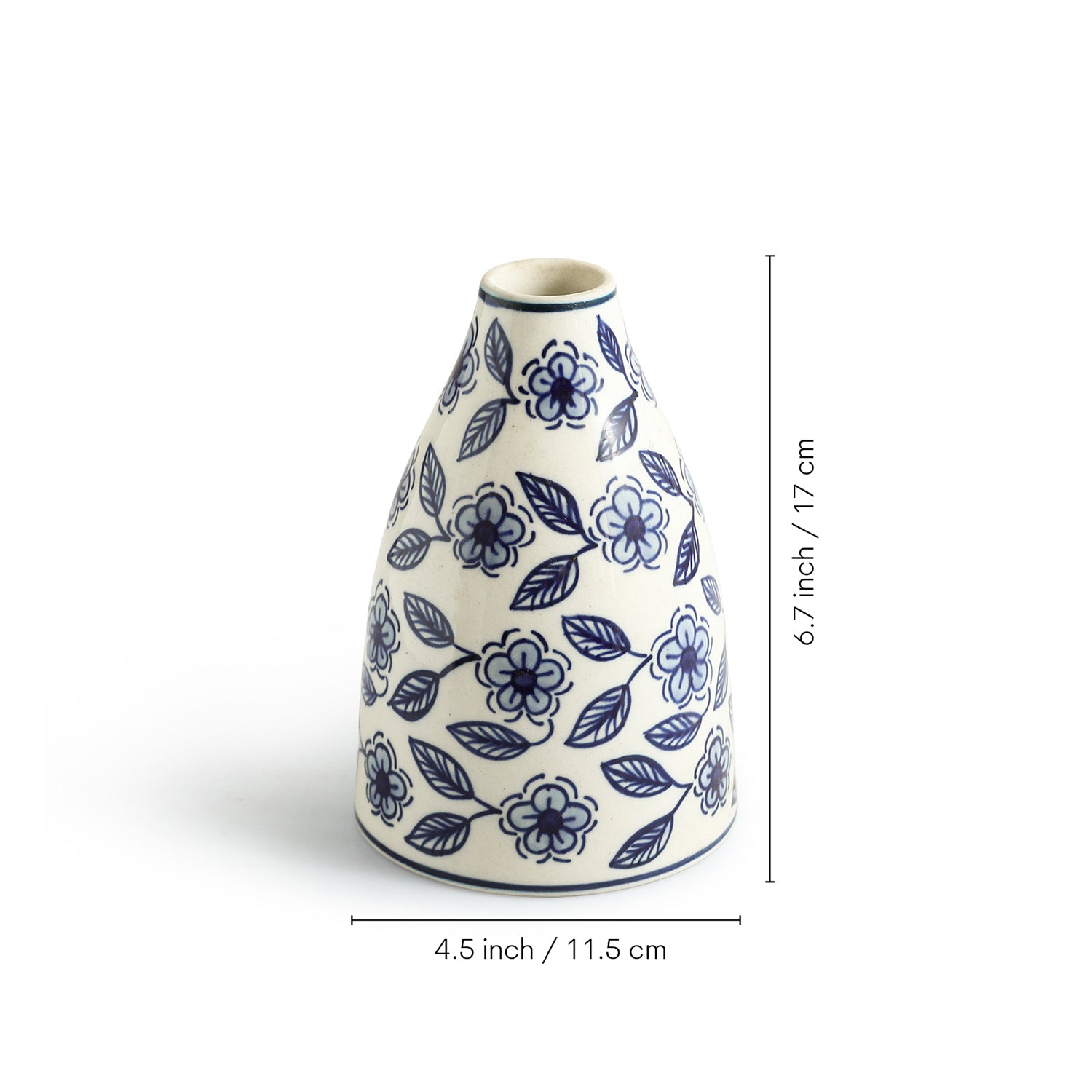 ExclusiveLane 'Indigo Bloom' Decorative Ceramic Vase (17.0 Cm, Hand-Painted)