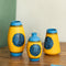 ExclusiveLane 'Madhubani Tales' Hand-Painted Terracotta Vases (Set of 3, Marigold Yellow & Cool Blue)