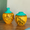 ExclusiveLane 'Warli Tales' Hand-Painted Terracotta Vases (Set of 2, Yellow & Turquoise)