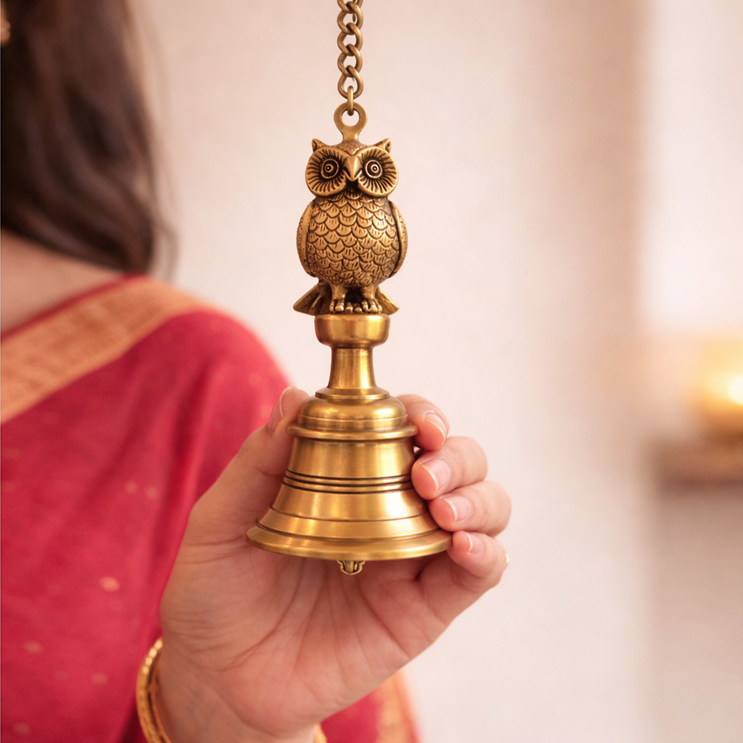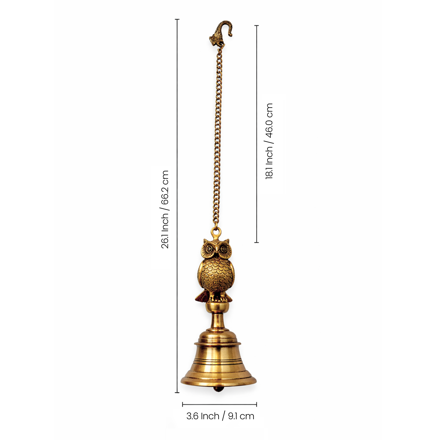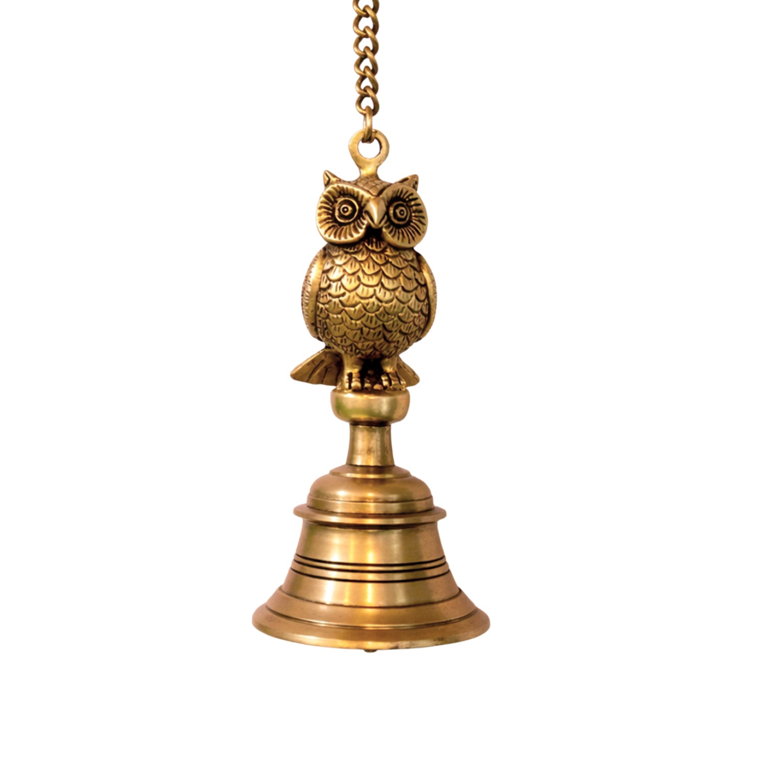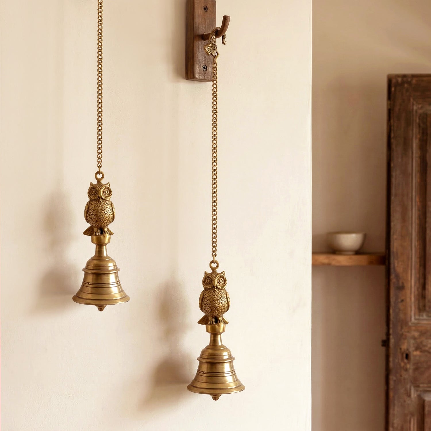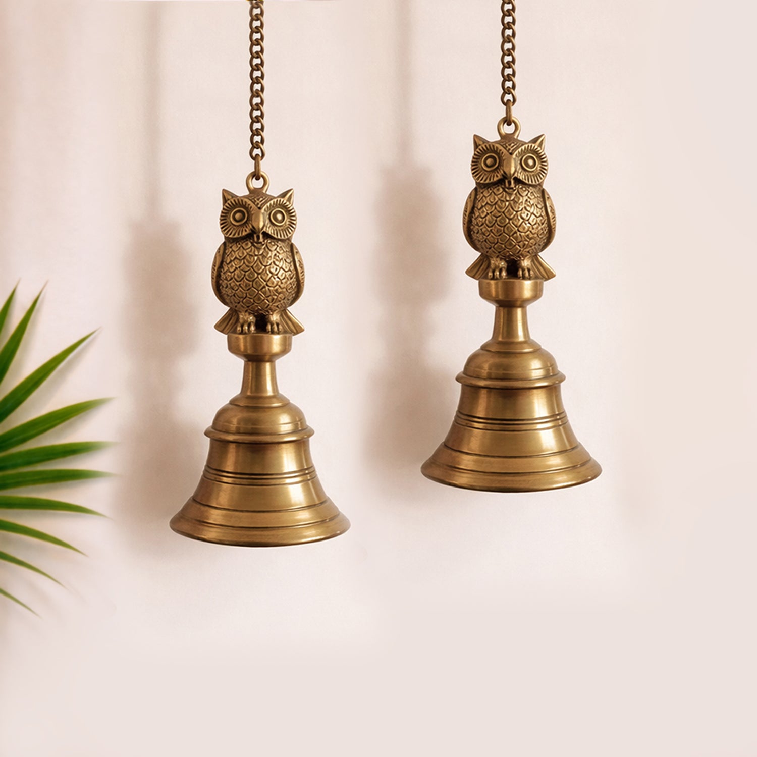 'Royal Owl' Decorative Hanging Pure Brass Bell (Set of 2, 66.2 Cm, 1.21 Kg, Hand-Etched)