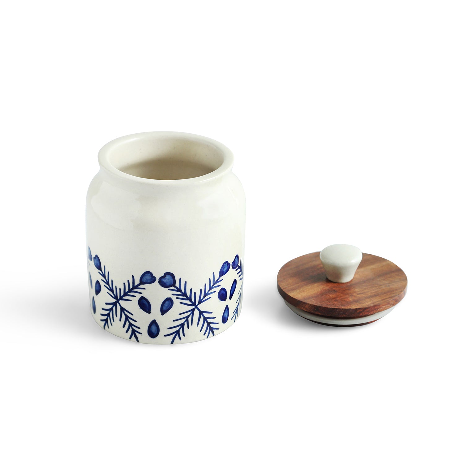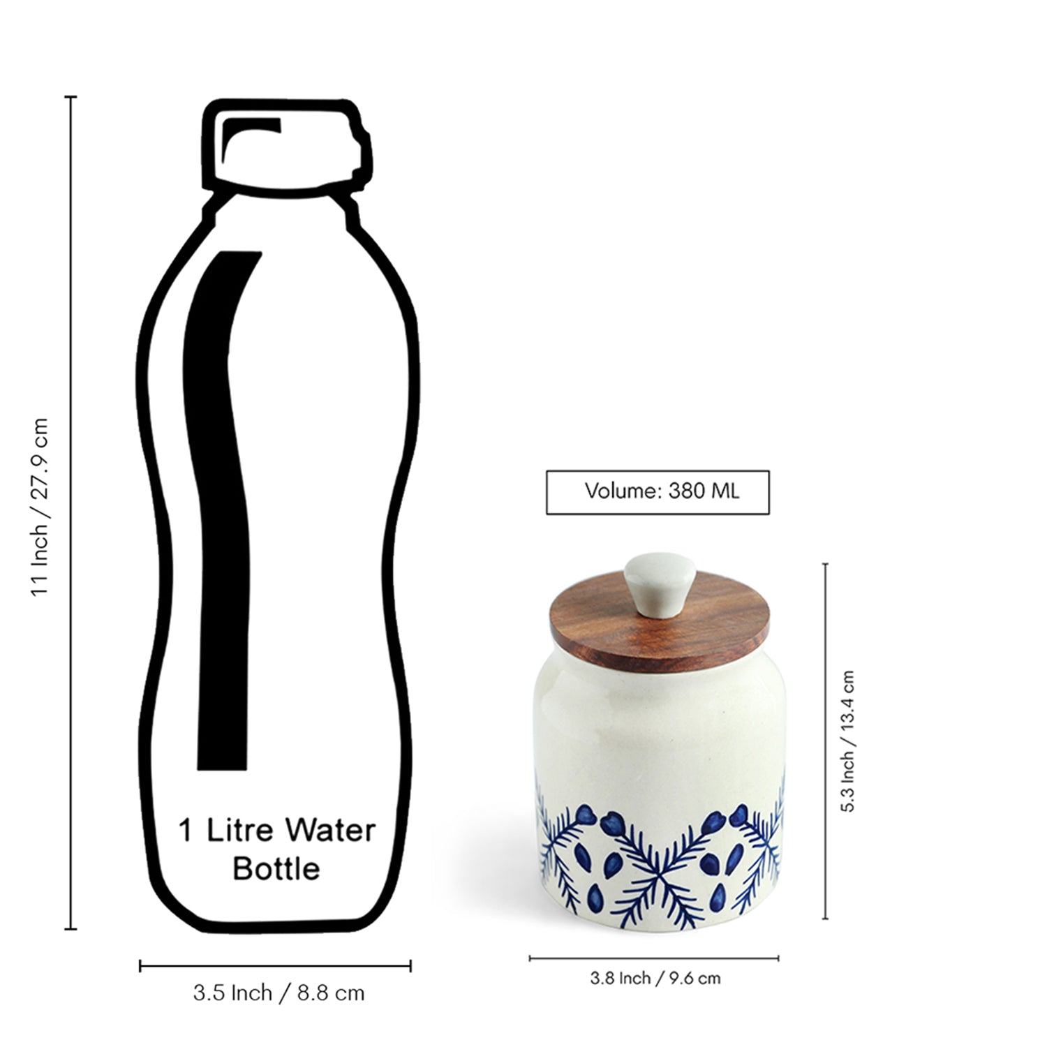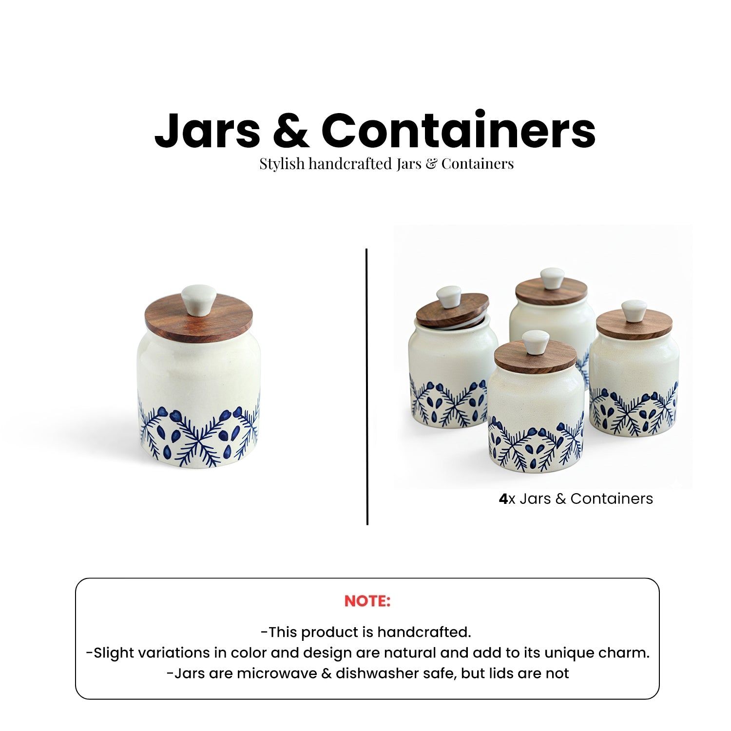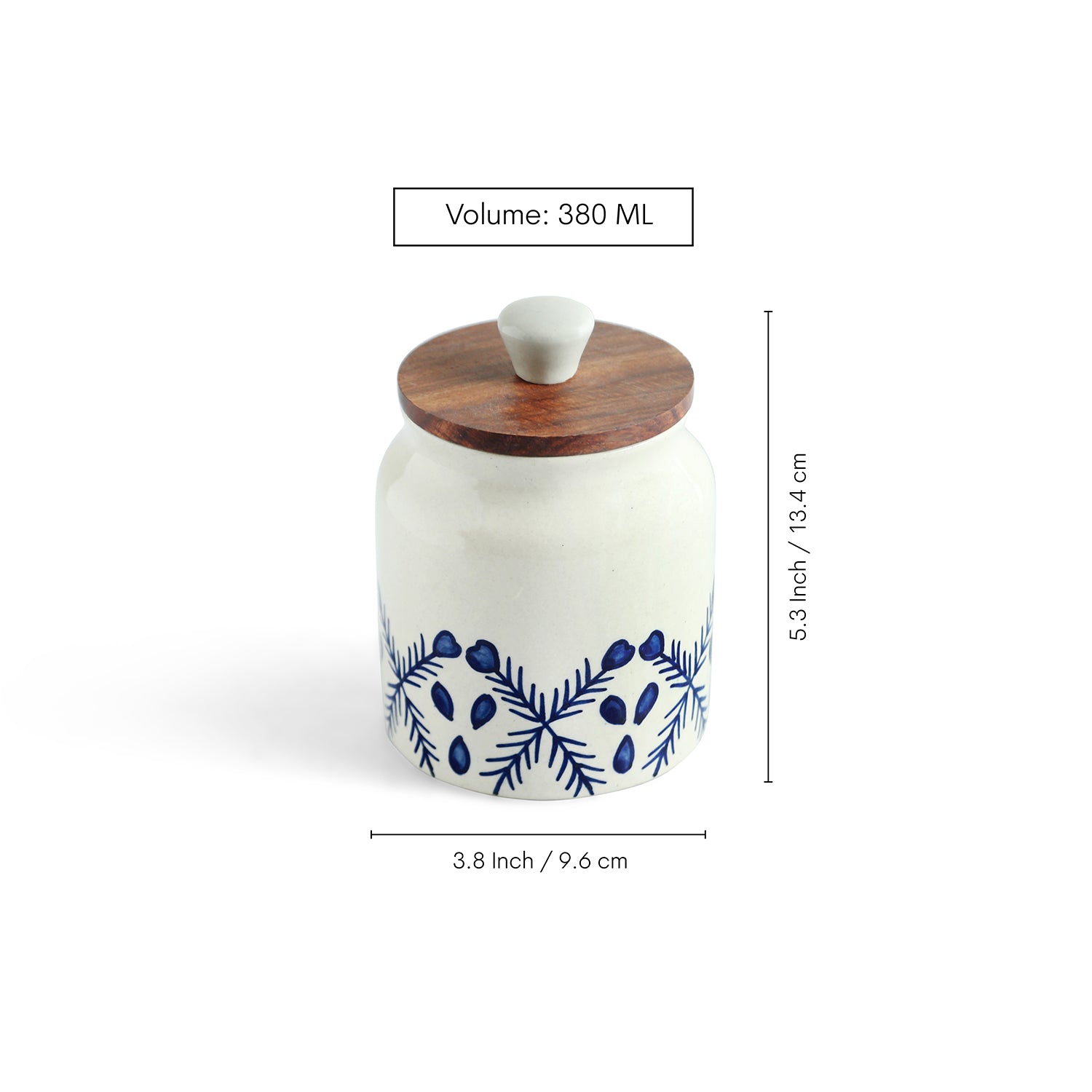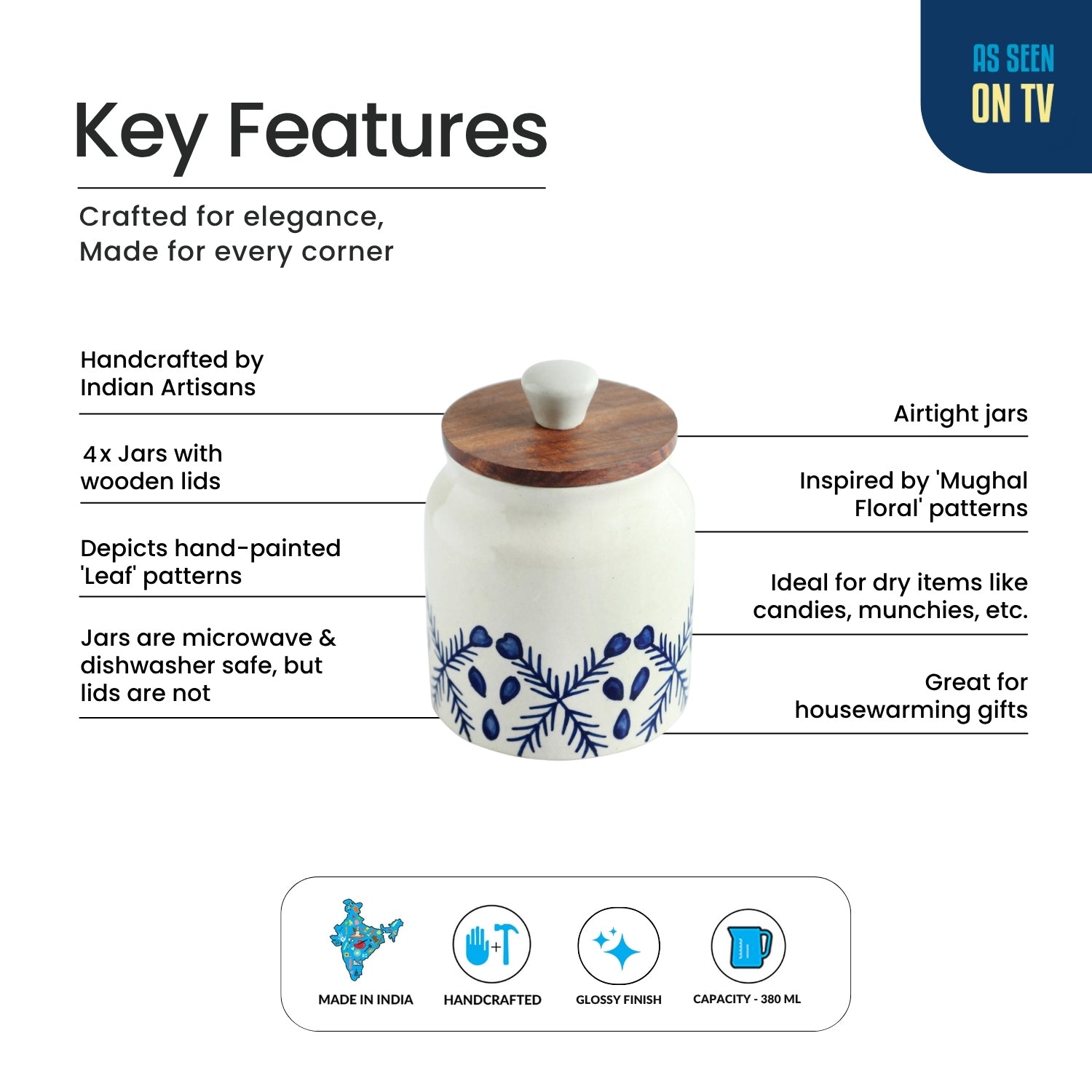 'Royal Mughal' Multi-Utility Storage Jars & Containers In Ceramic With Wooden Lid (Set of 4, Airtight, 380 ML, Hand-Painted, 13.4 Cm)