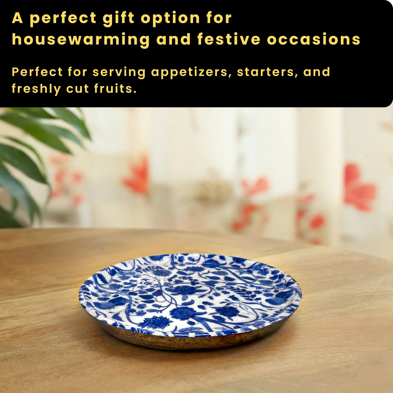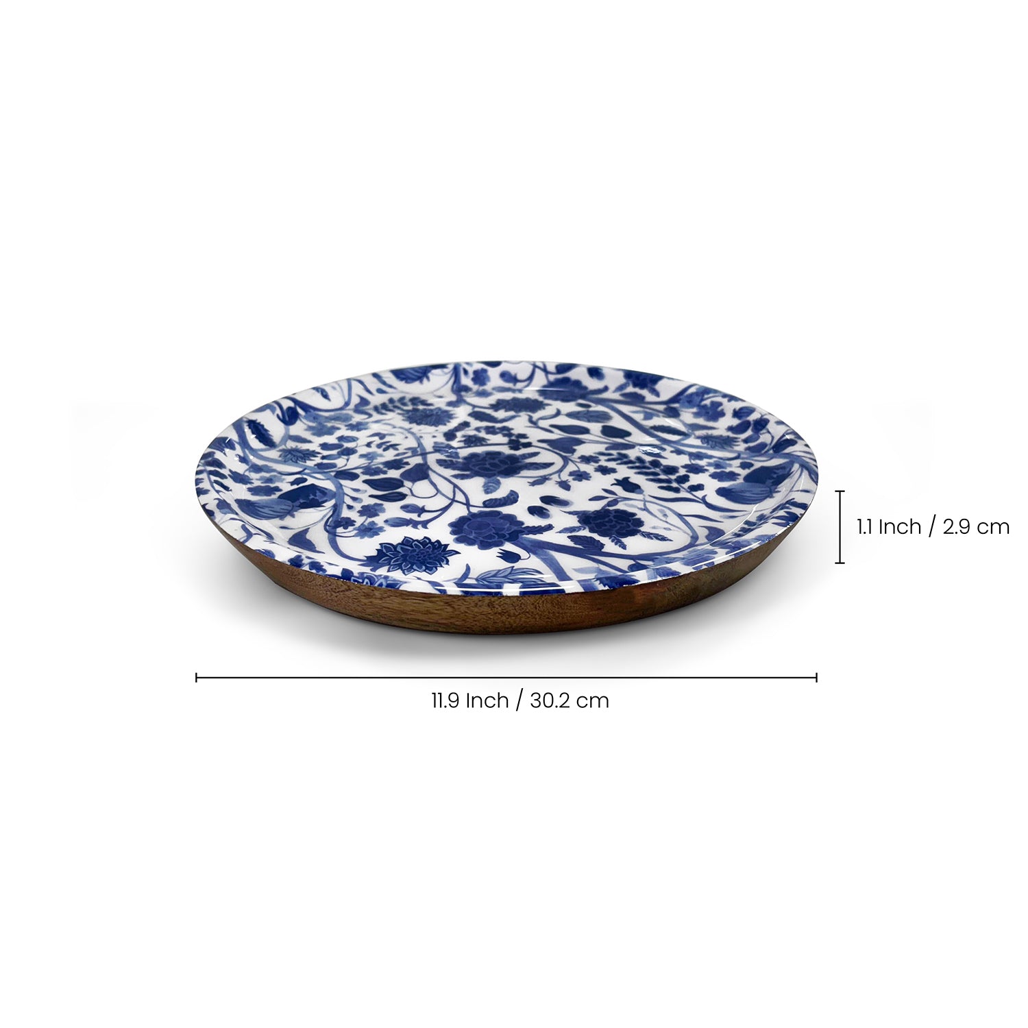 'Indigo Baagh' Wooden Serving Platter (30.2 cm, Hand-Enameled)