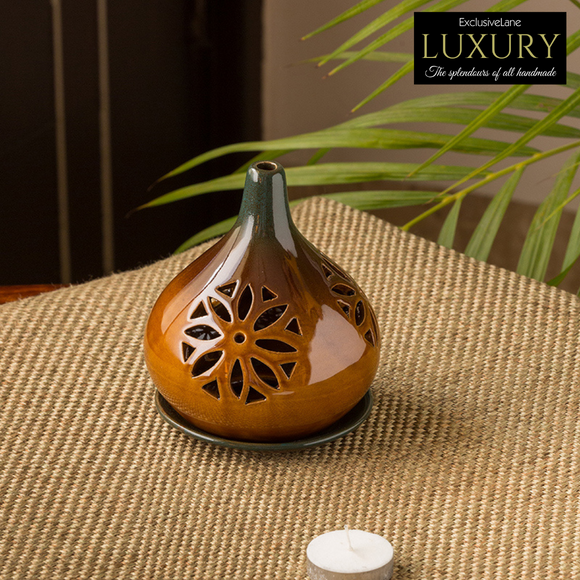 'Amber & Teal' Studio Pottery Table Tea-Light Holder In Ceramic