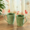 ExclusiveLane 'Green Flora' Ceramic Tea And Coffee Mugs (Set of 2, 290 ML, Microwave Safe, Hand-Embossed)