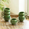 'Jade Forest' Hand Glazed Ceramic Tea Cups & Saucers (Set of 6, 120 ml, Microwave Safe)