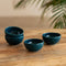 'Teal Forest' Hand Glazed Ceramic Dinner Bowls/Katoris (Set of 4, 120 ml, Hand-Etched, Microwave Safe)