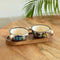'The Hut' Hand-Painted Ceramic Serving Bowls With Wooden Tray (Set of 2, 260 ml)