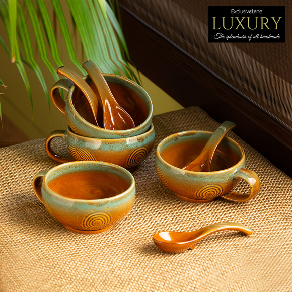 Each classic bowl has a significant design and colour. The shine of the bowls is curated from the hand glazing technique. Most of the ceramic bowls collection is inspired by Indian art forms and paintings. While you order soup bowl set, ceramic serving bowls set, ceramic bowl set, classic bowl, ceramic bowls online India with ExclusiveLane, you will be amazed to see the finish, design, colour, and quality of each piece you buy.