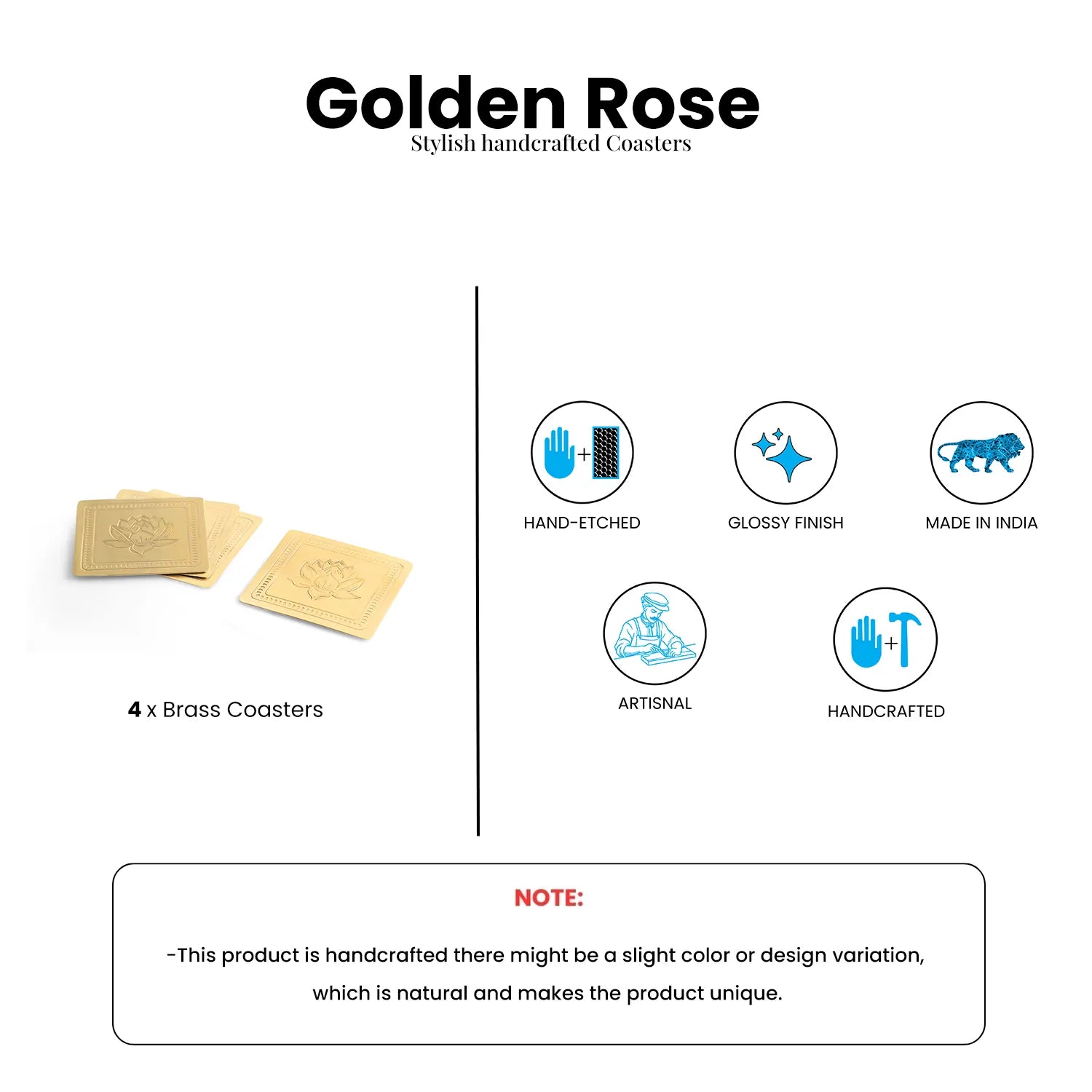 ExclusiveLane 'Golden Rose' Brass Coasters (Set Of 4, Hand-Etched)