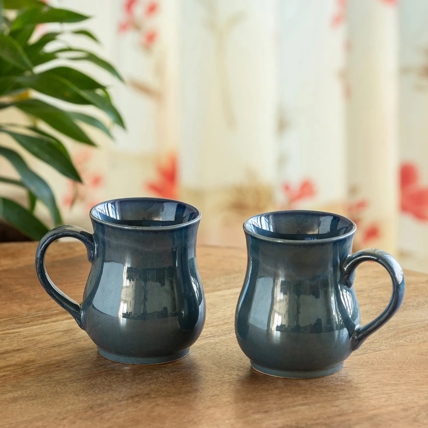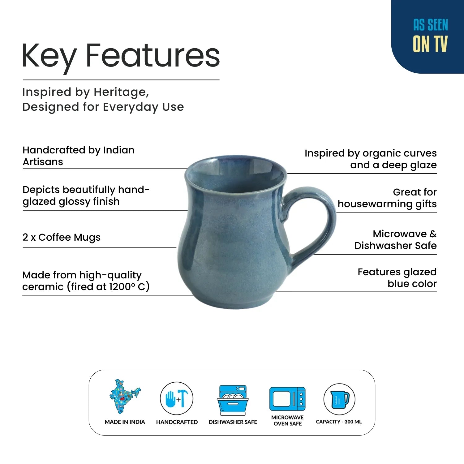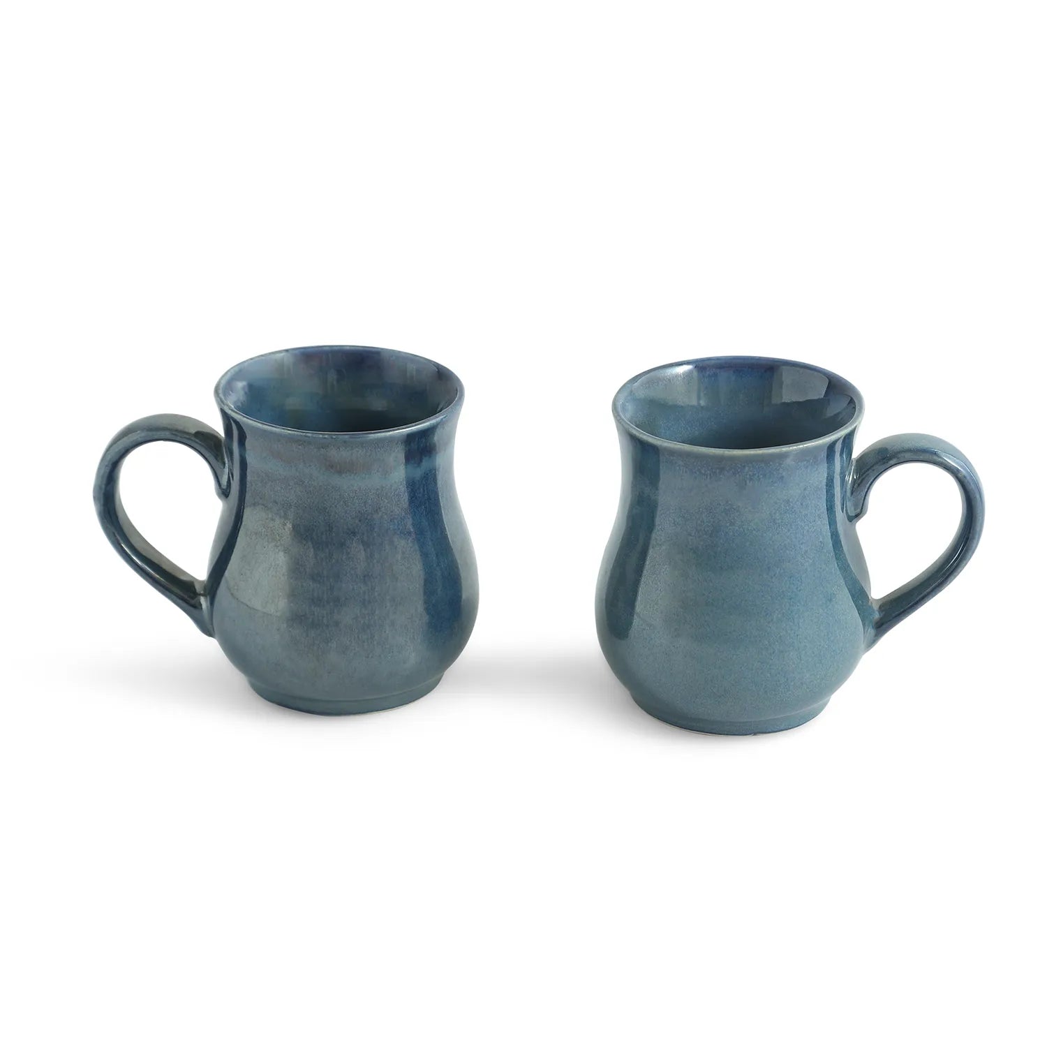 ExclusiveLane 'Belly Pot' Ceramic Tea And Coffee Mugs (Set of 2, 300 ML, Microwave Safe, Hand Galzed)