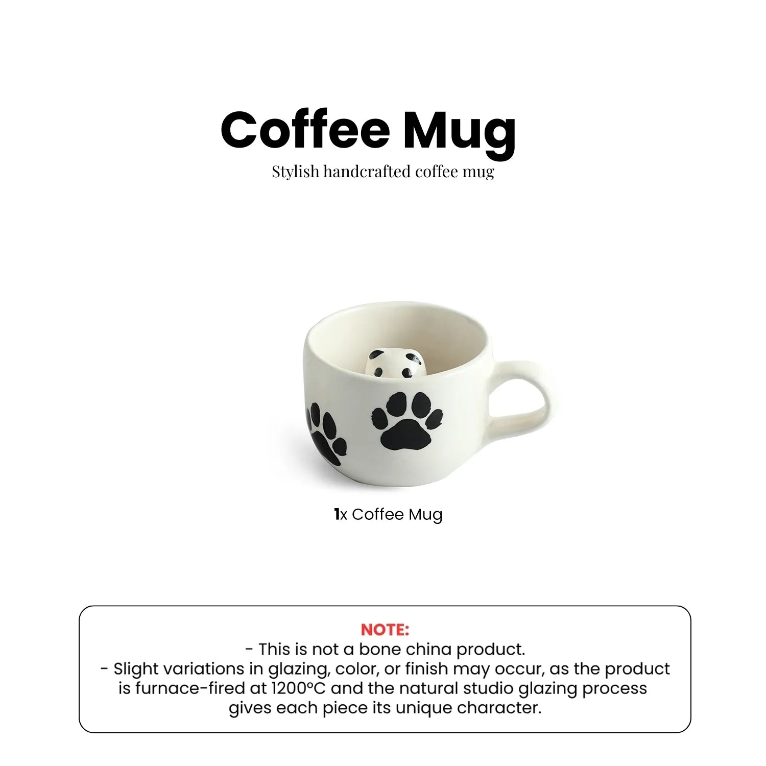ExclusiveLane 'Furry Friend Suprise' Ceramic Tea And Coffee Mugs (210 ML, Microwave Safe, Hand-Embossed)