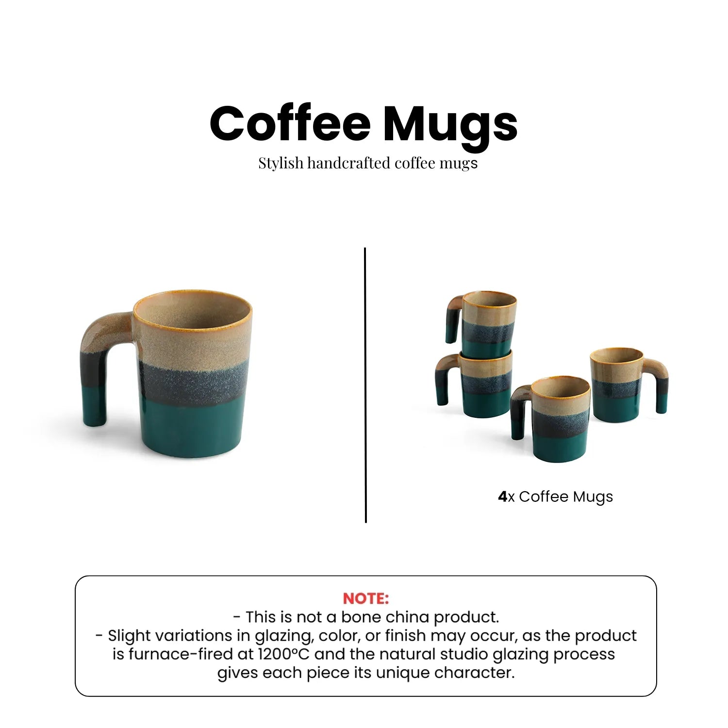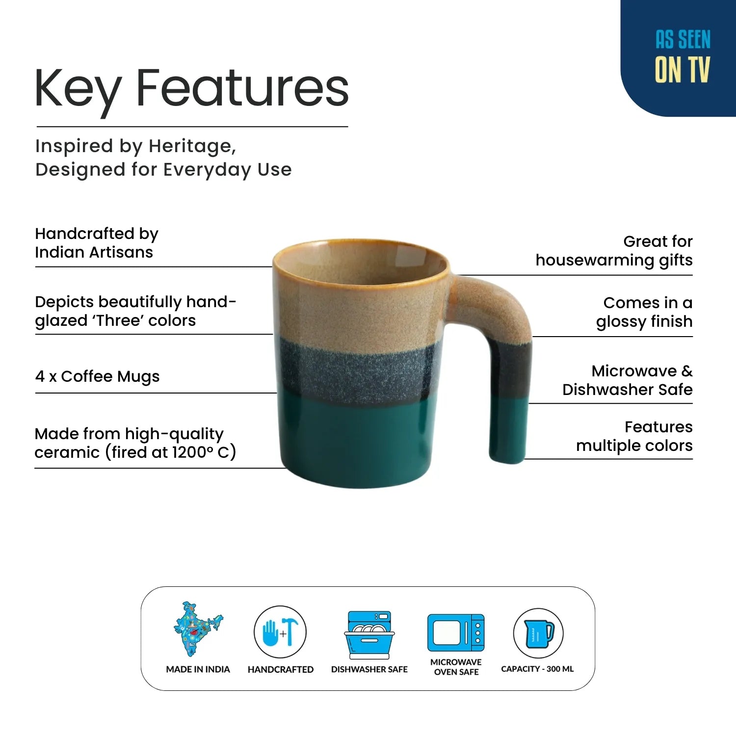 ExclusiveLane 'Hue & Handle' Ceramic Tea And Coffee Mugs (Set of 4, 300 ML, Microwave Safe, Hand Galzed)