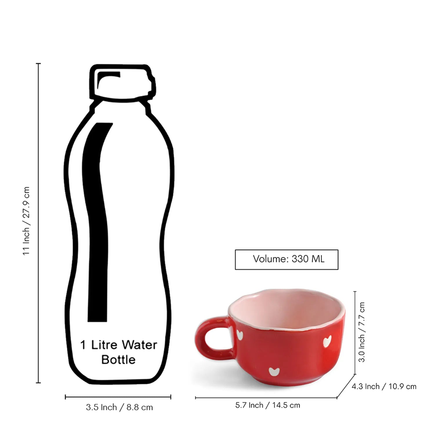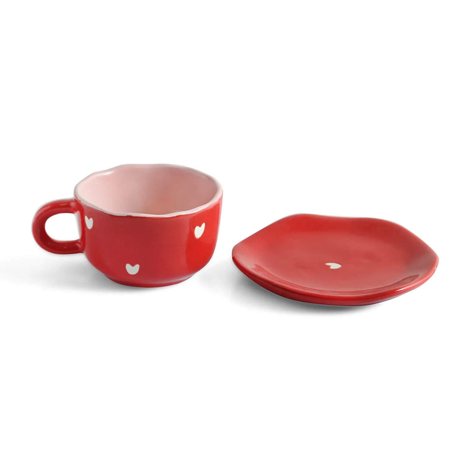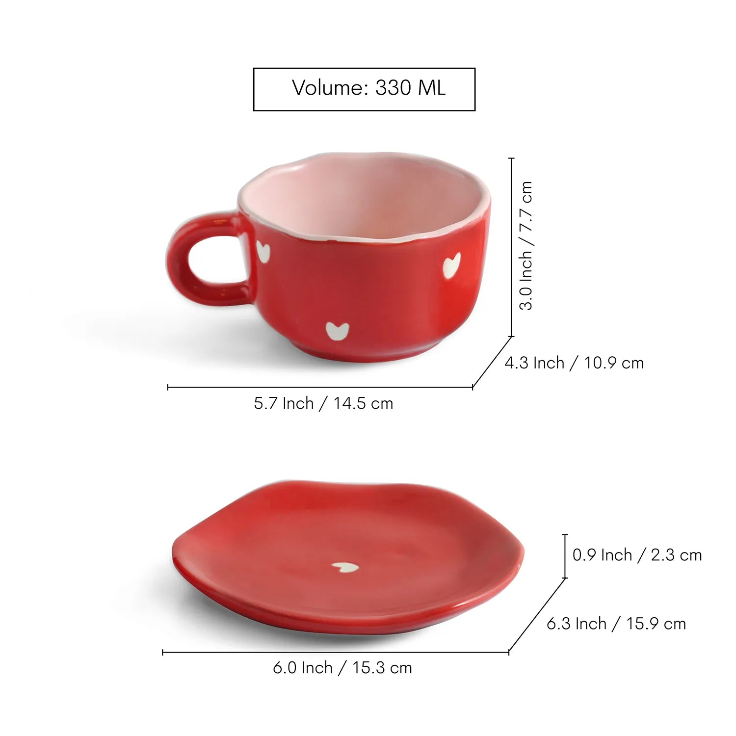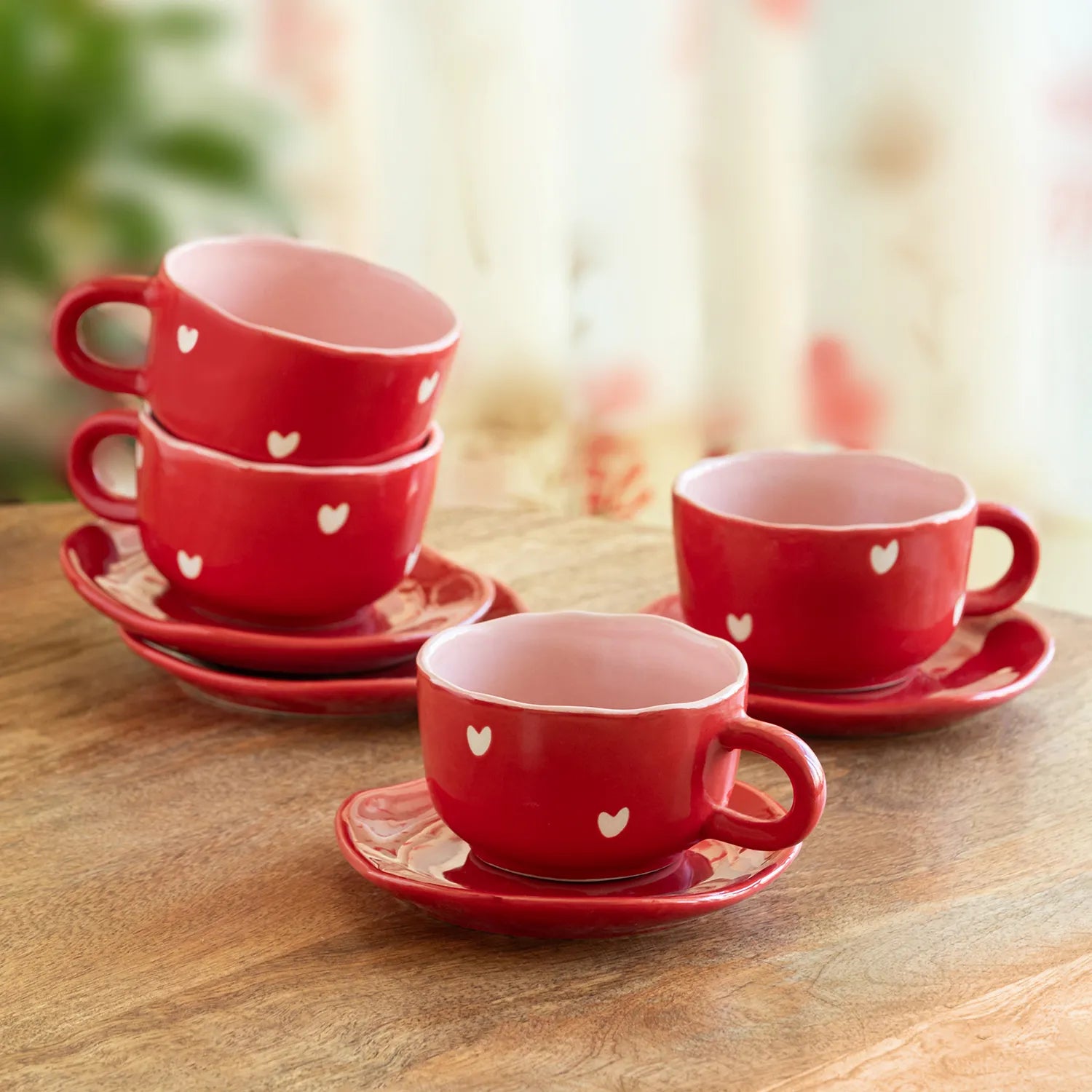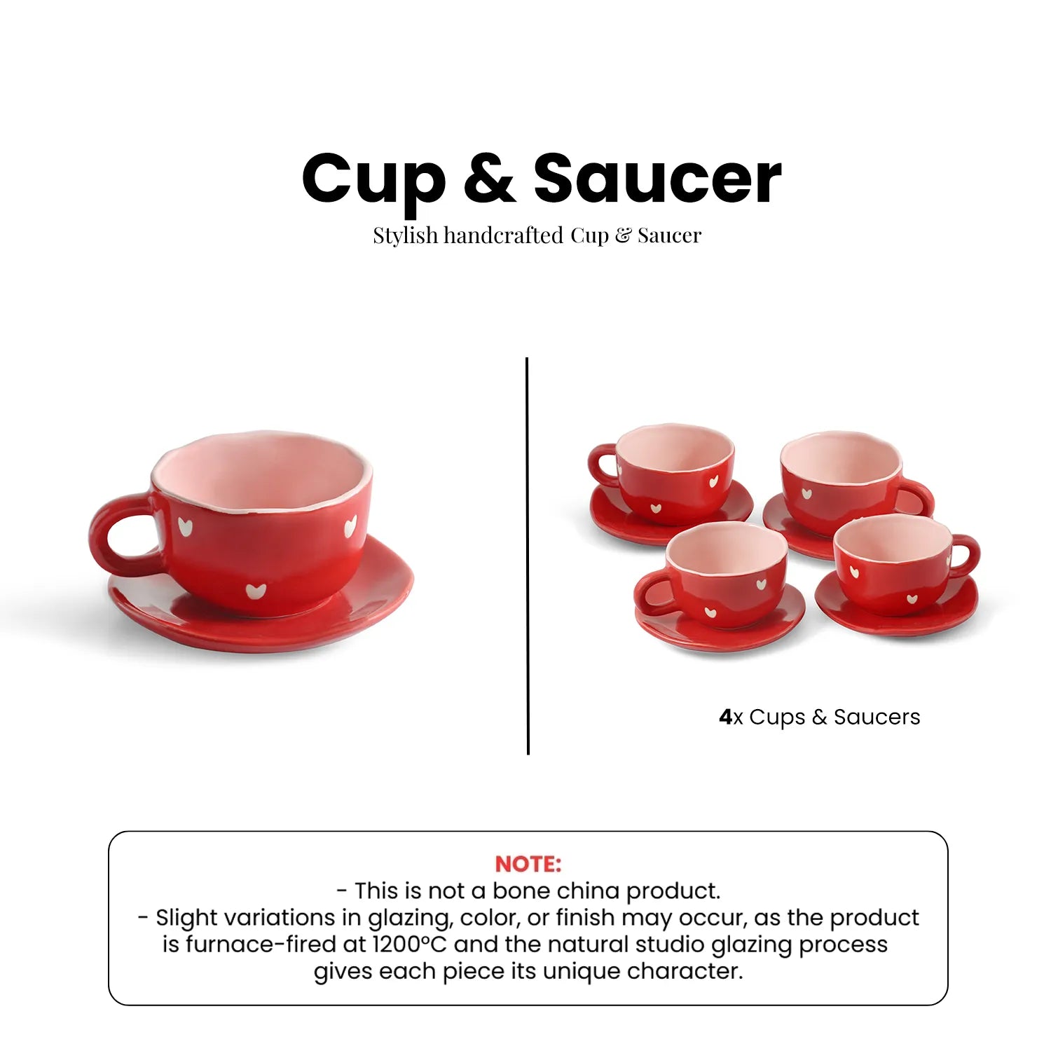 ExclusiveLane 'Crimsom Charm' Ceramic Cappuccino Coffee Cups & Saucers (Set of 4, 330 ML, Microwave Safe, Hand-Painted)