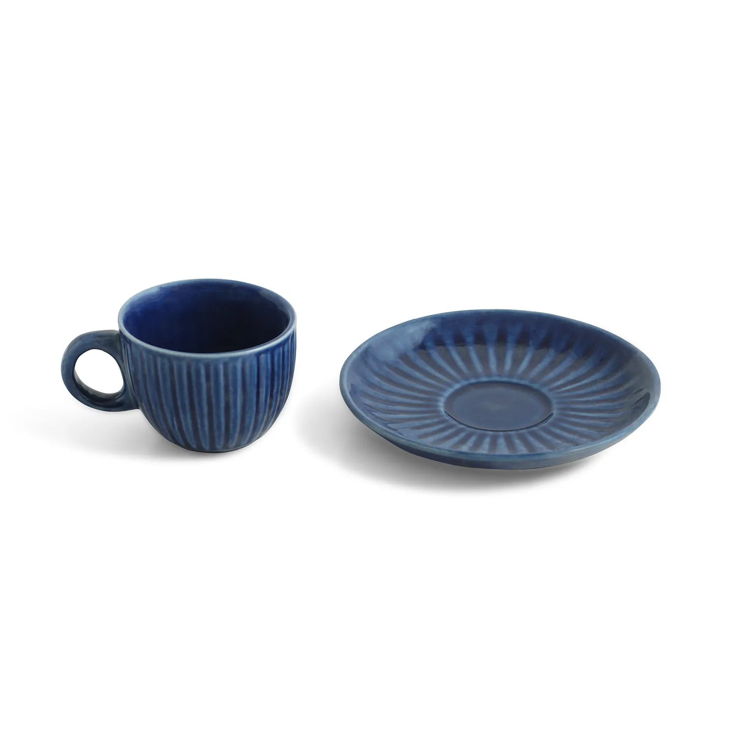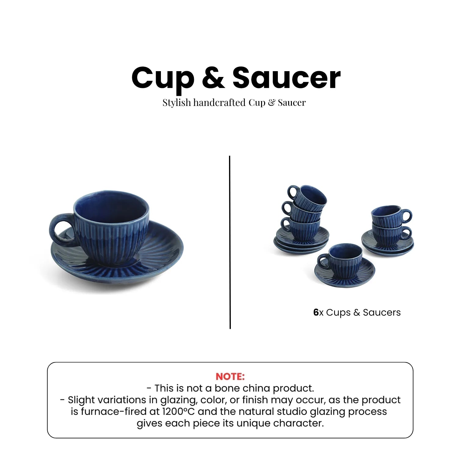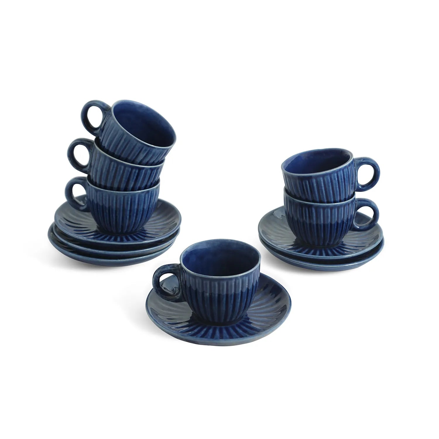 ExclusiveLane 'Midnight Ripped' Ceramic Tea Cups & Saucers (Set of 6, 150 ML, Microwave Safe, Hand-Glazed)