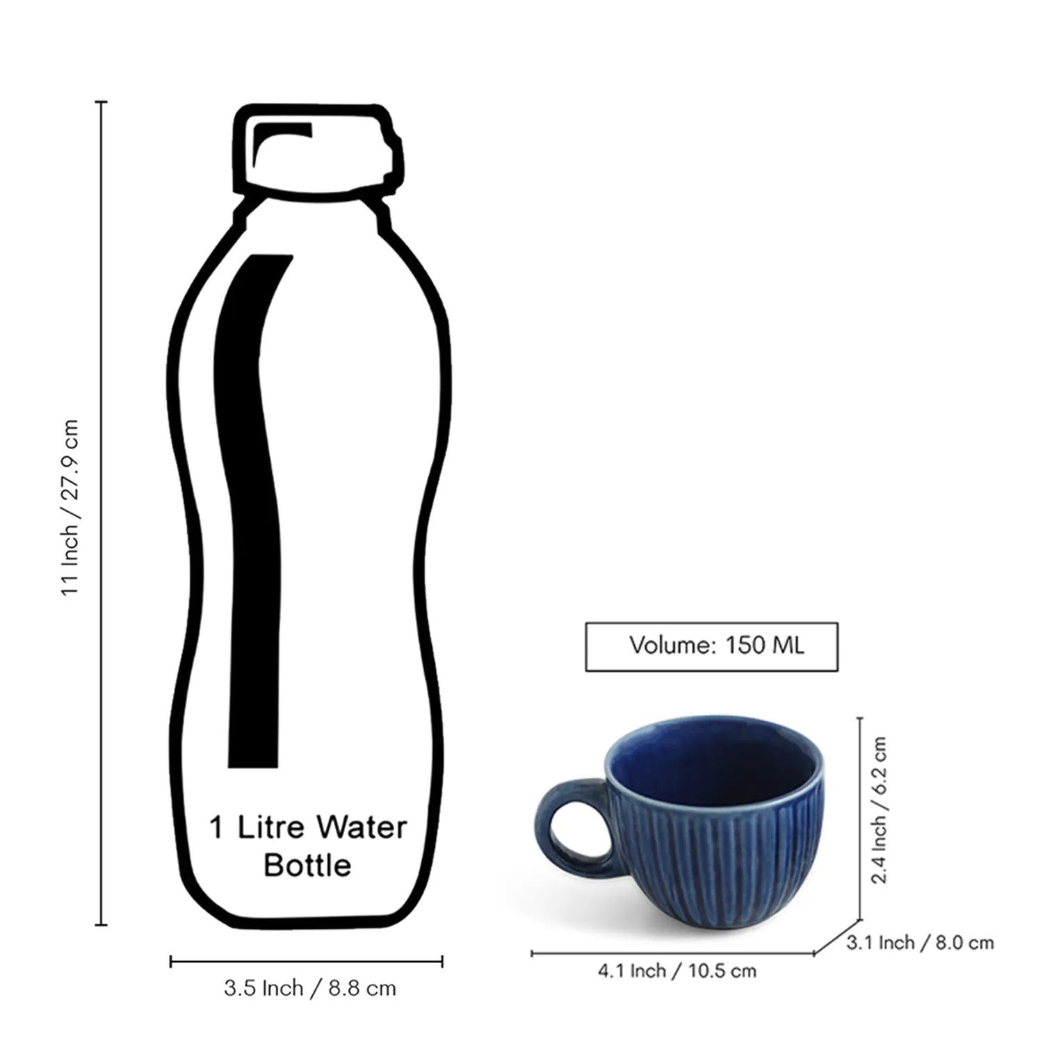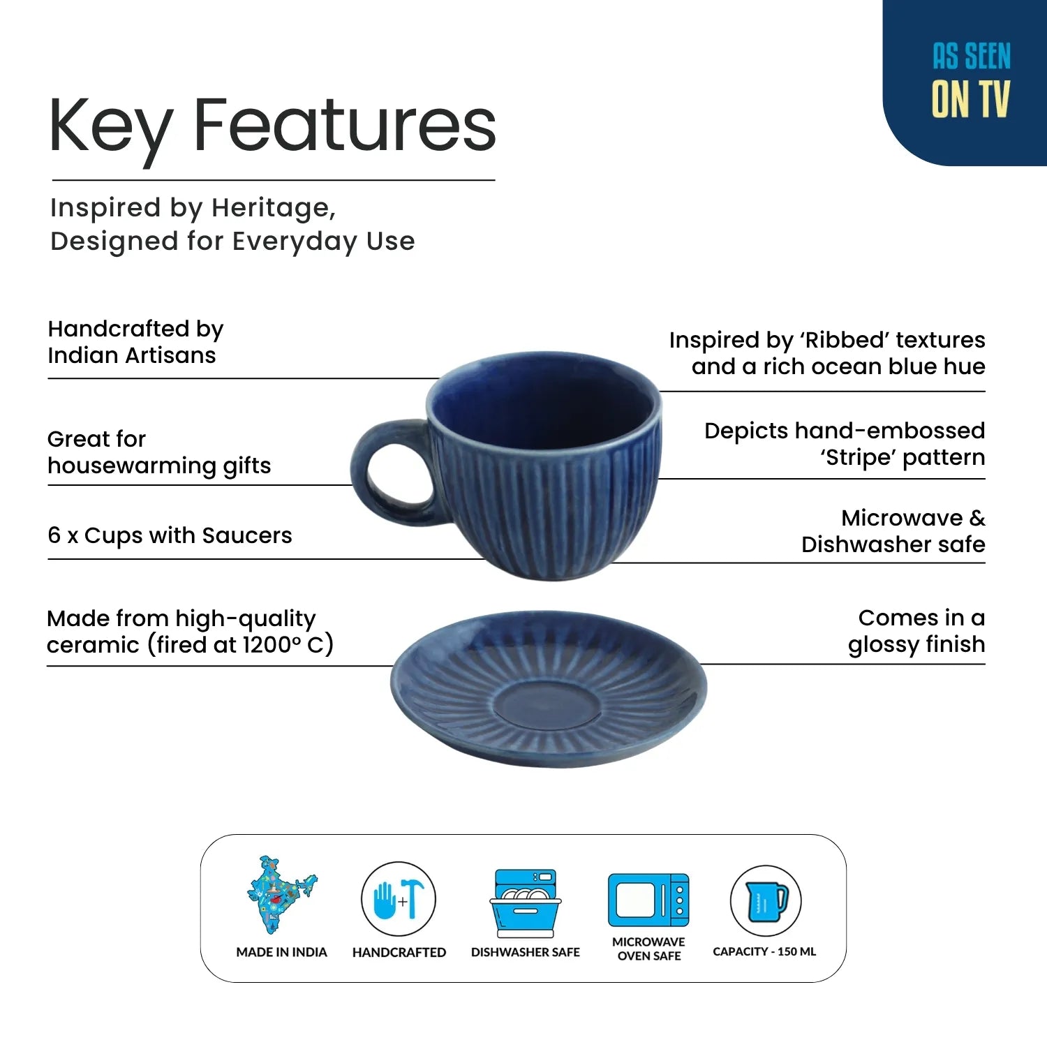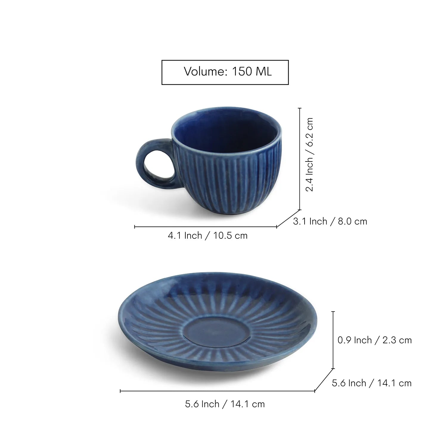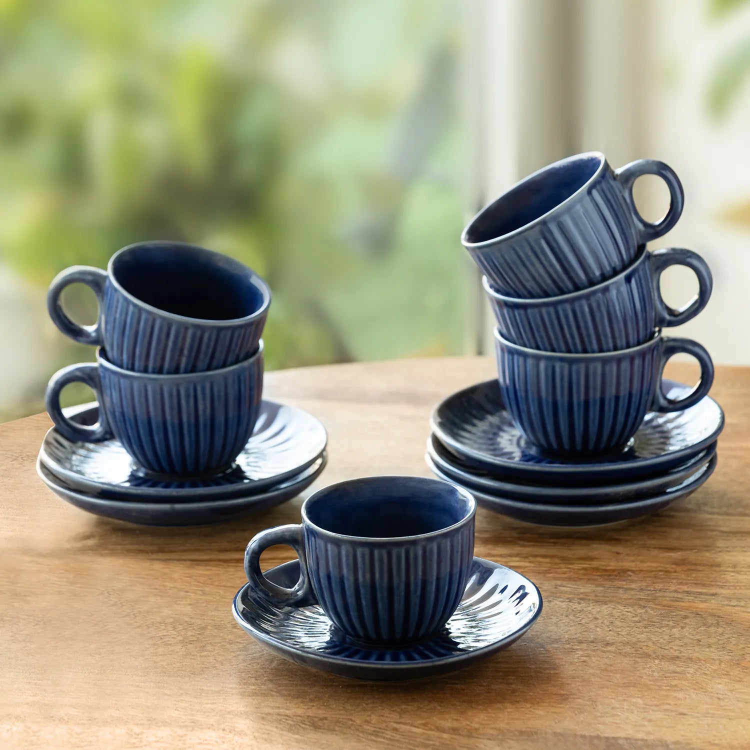 ExclusiveLane 'Midnight Ripped' Ceramic Tea Cups & Saucers (Set of 6, 150 ML, Microwave Safe, Hand-Glazed)
