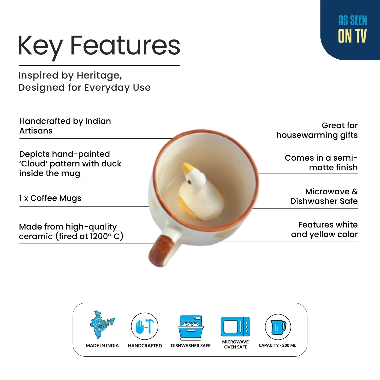 ExclusiveLane 'Peek-A-Boo' Ceramic Tea And Coffee Mugs (200 ML, Microwave Safe, Hand-Embossed)
