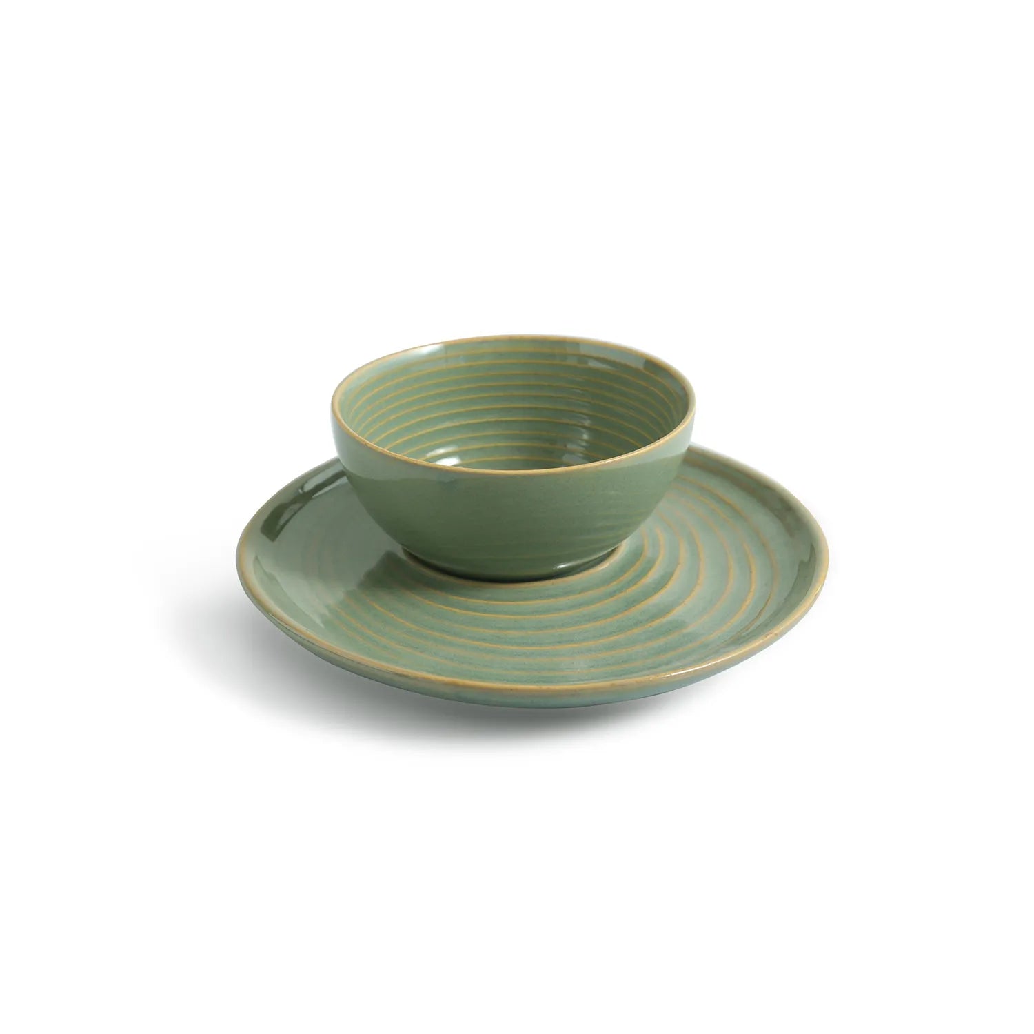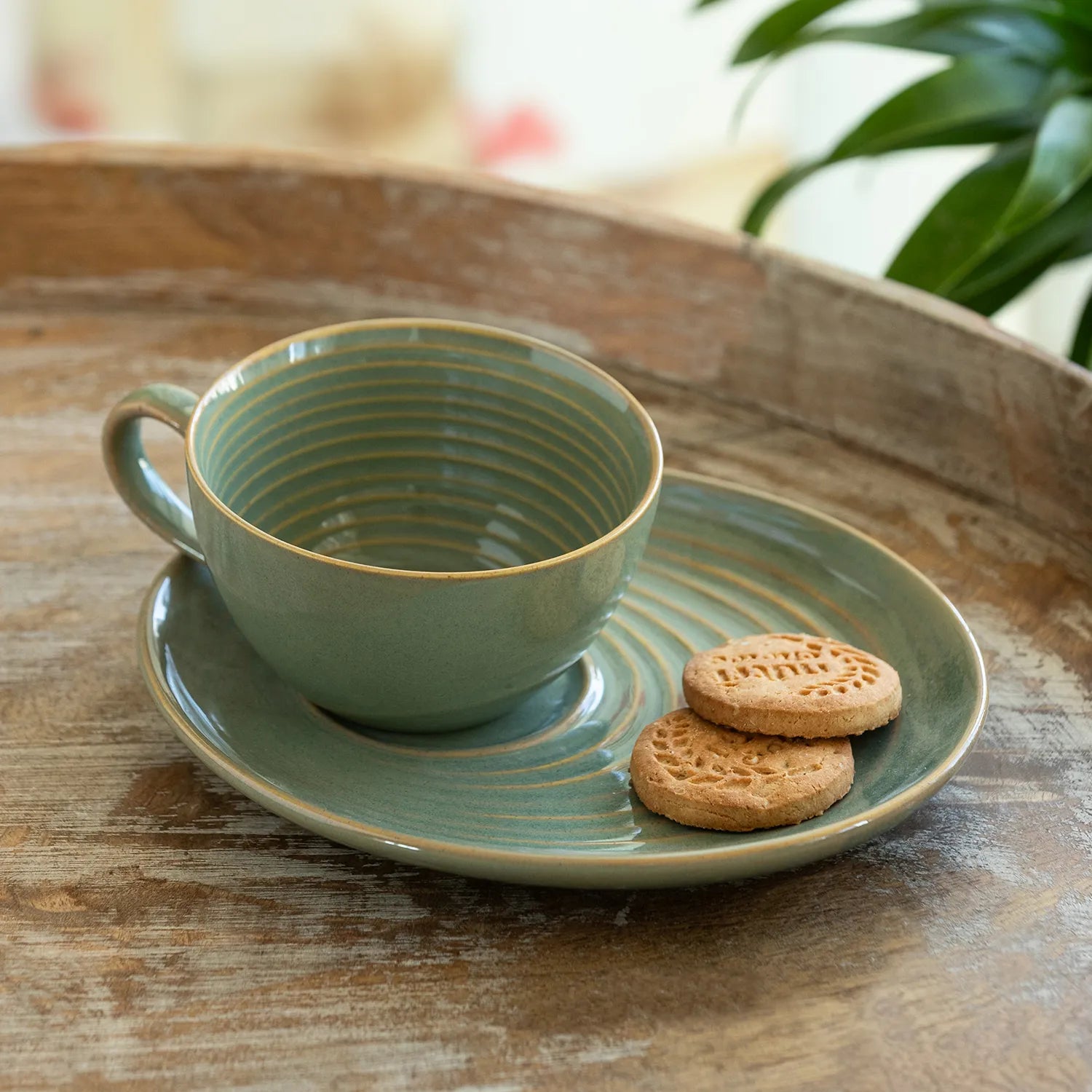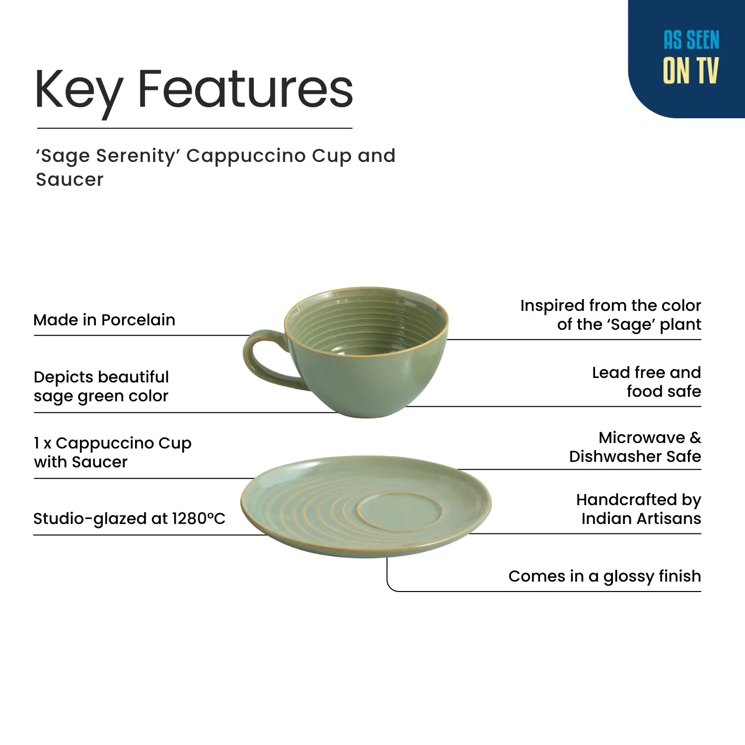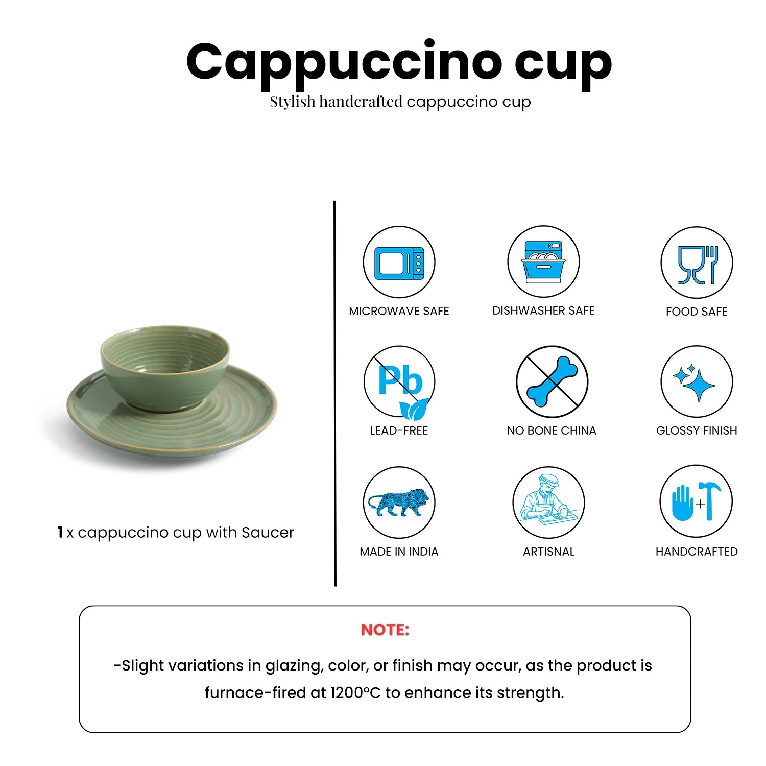 ExclusiveLane 'Sage Serenity' Porcelain Cappuccino Coffee Cup & Saucer (280 ML, Microwave Safe, Hand Glazed)