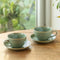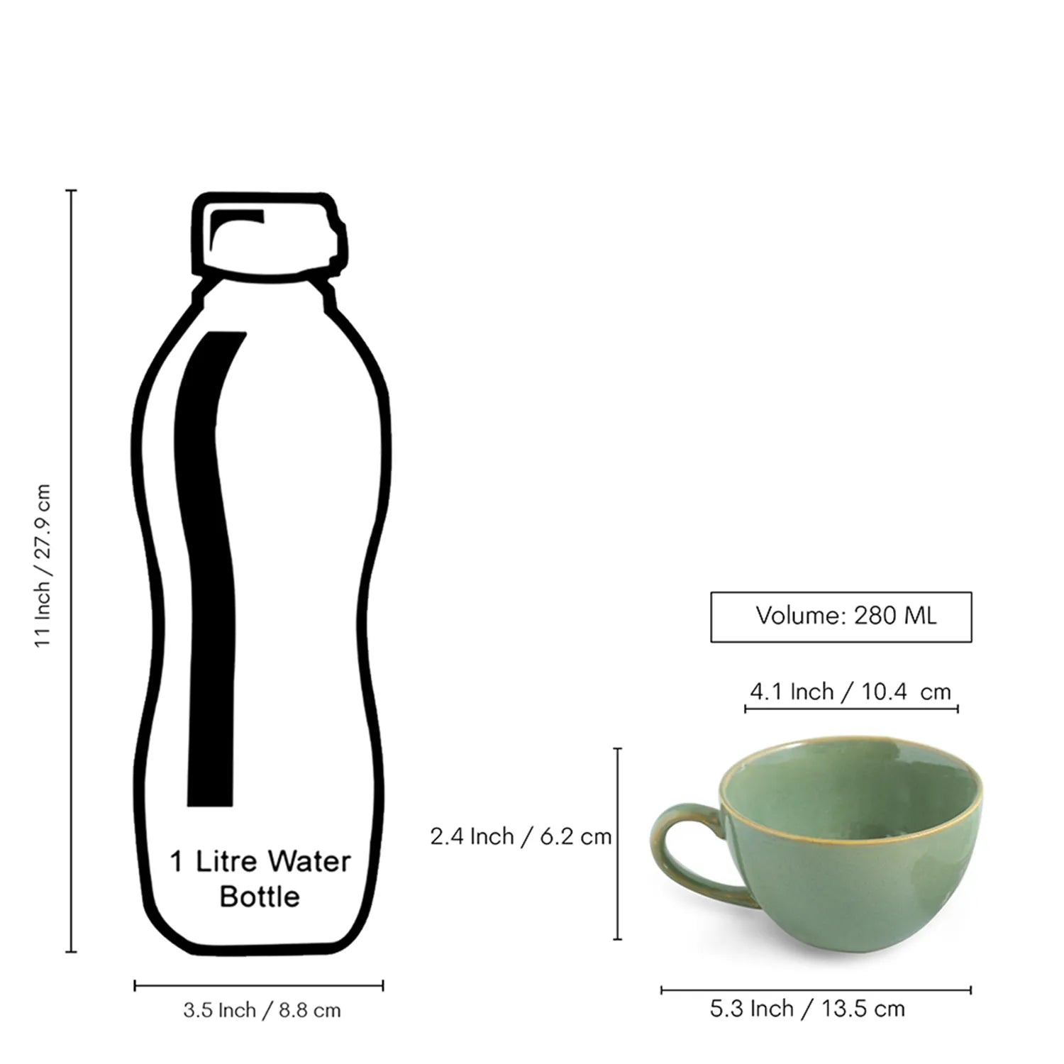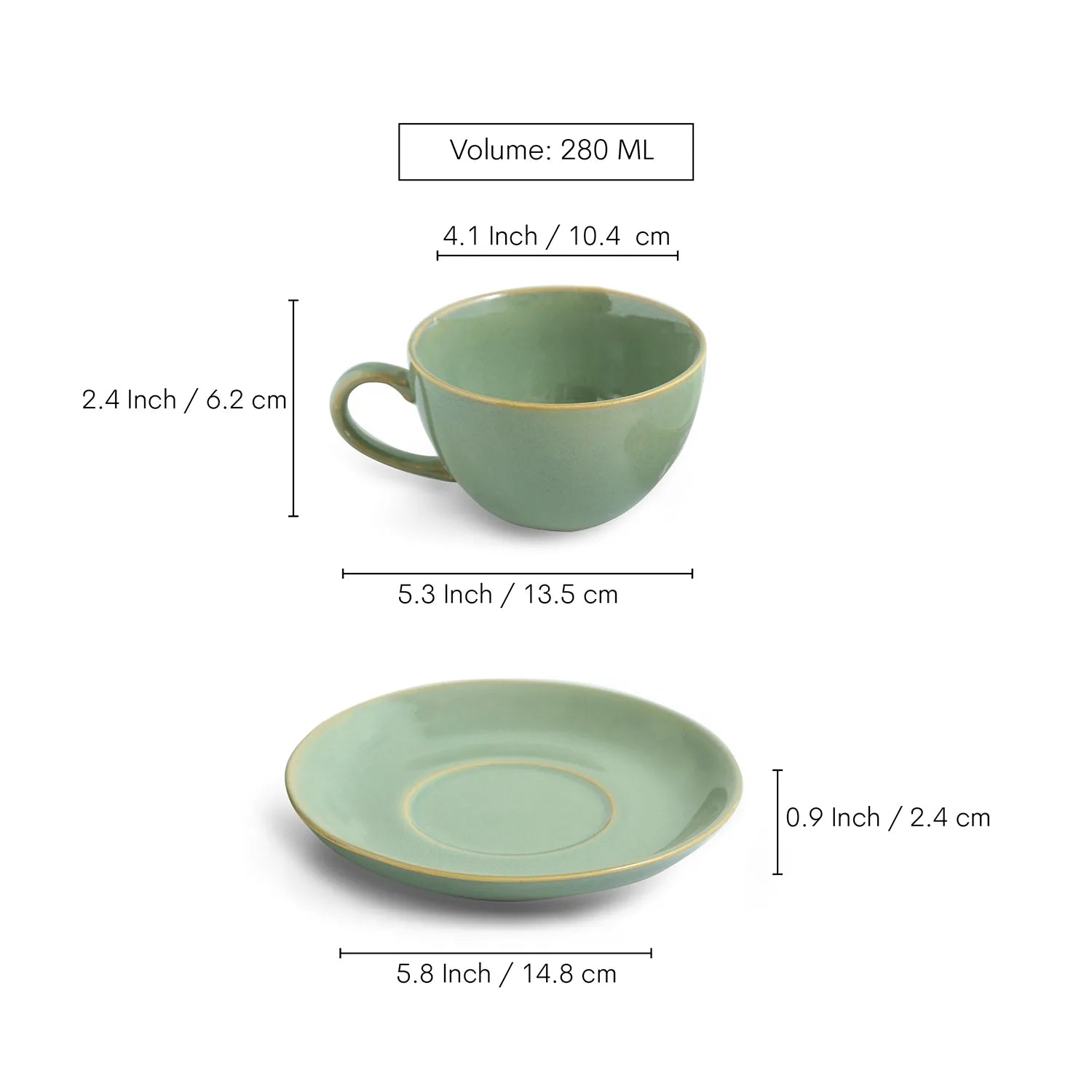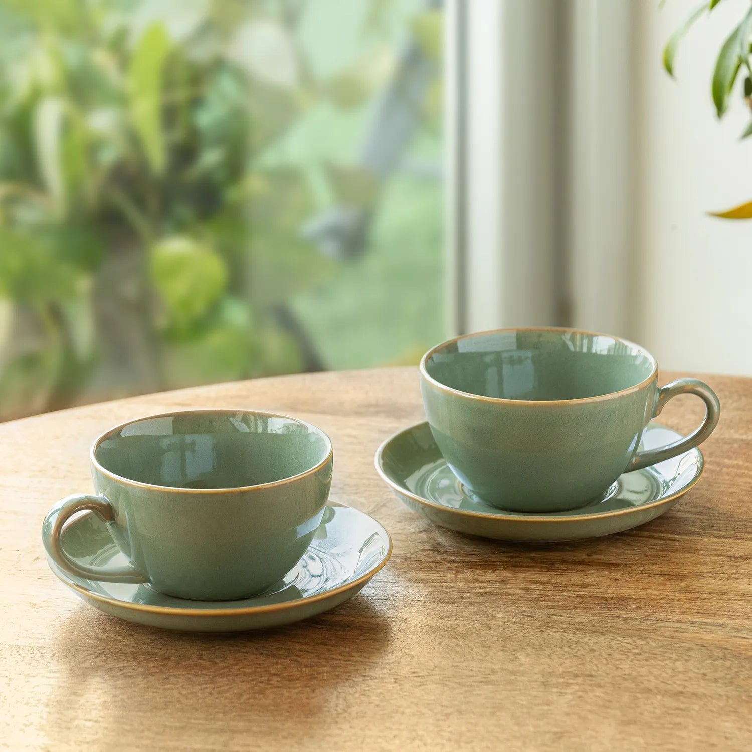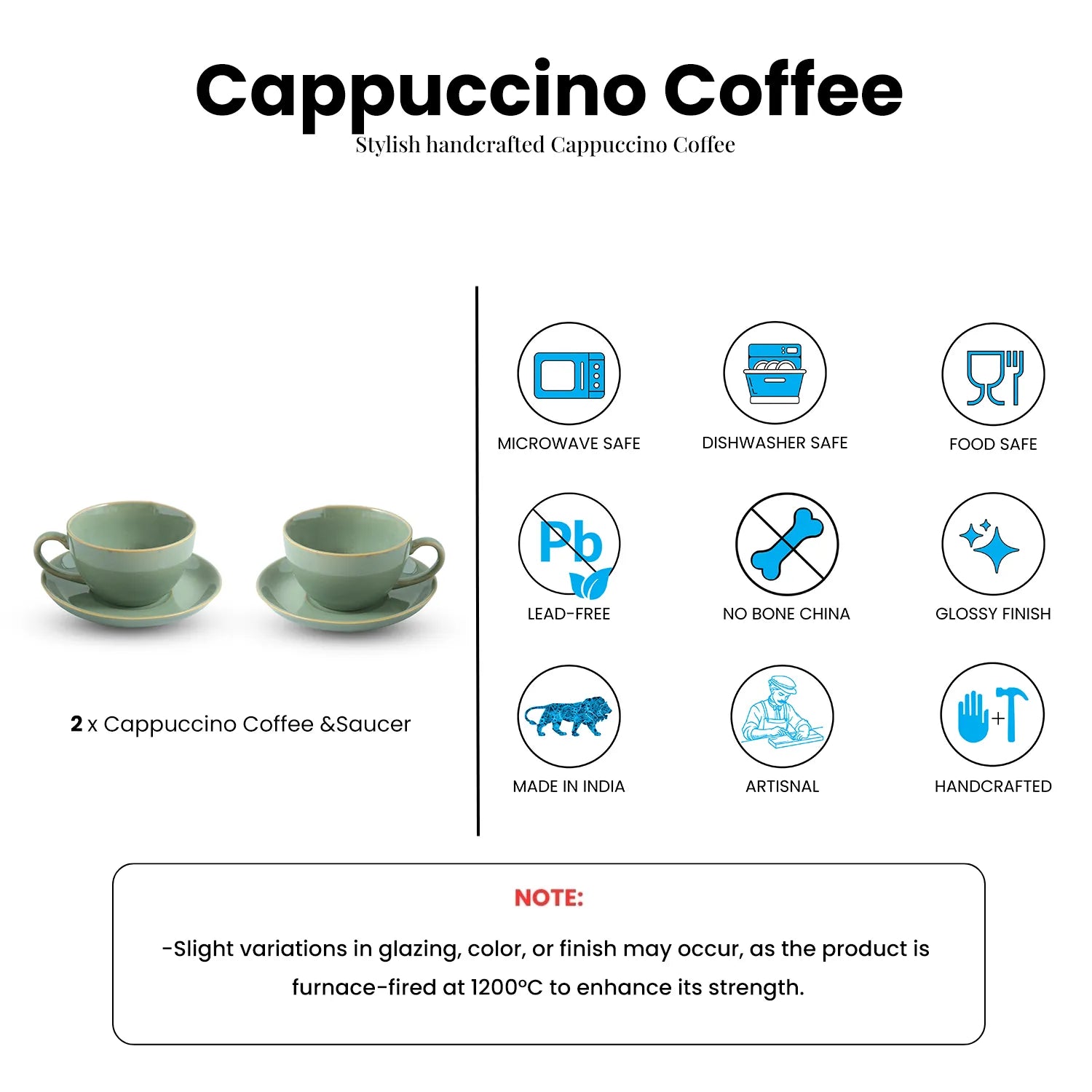 ExclusiveLane 'Sage Serenity' Porcelain Cappuccino Cups & Saucers For Coffee (Set of 2, 280 ML, Microwave Safe, Hand Glazed)