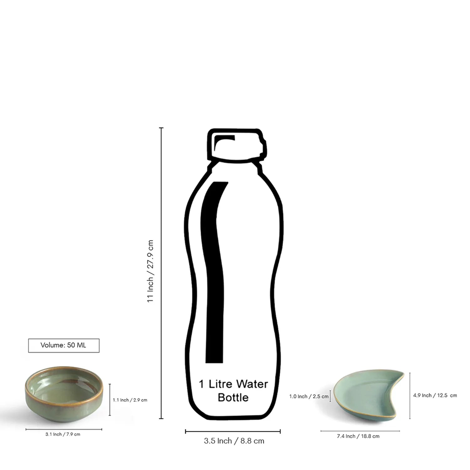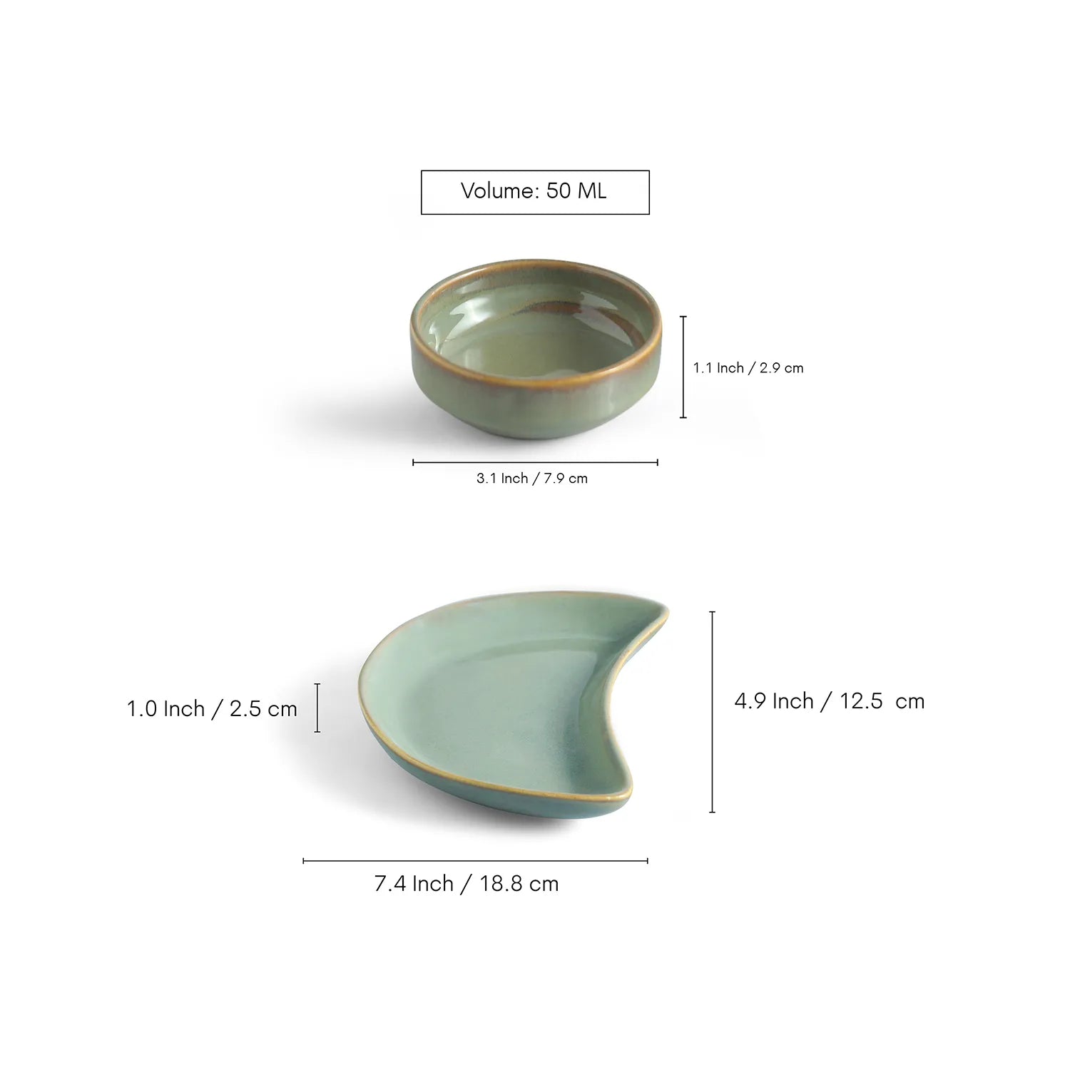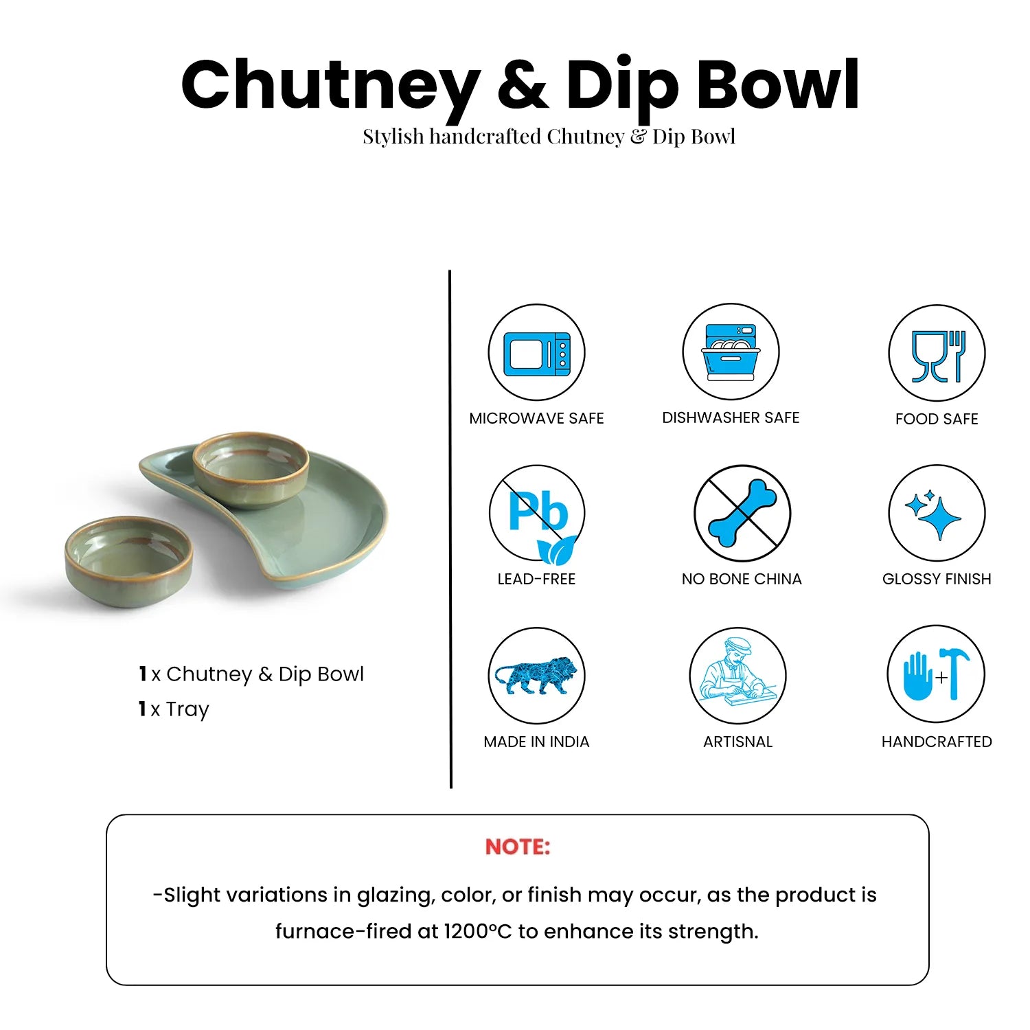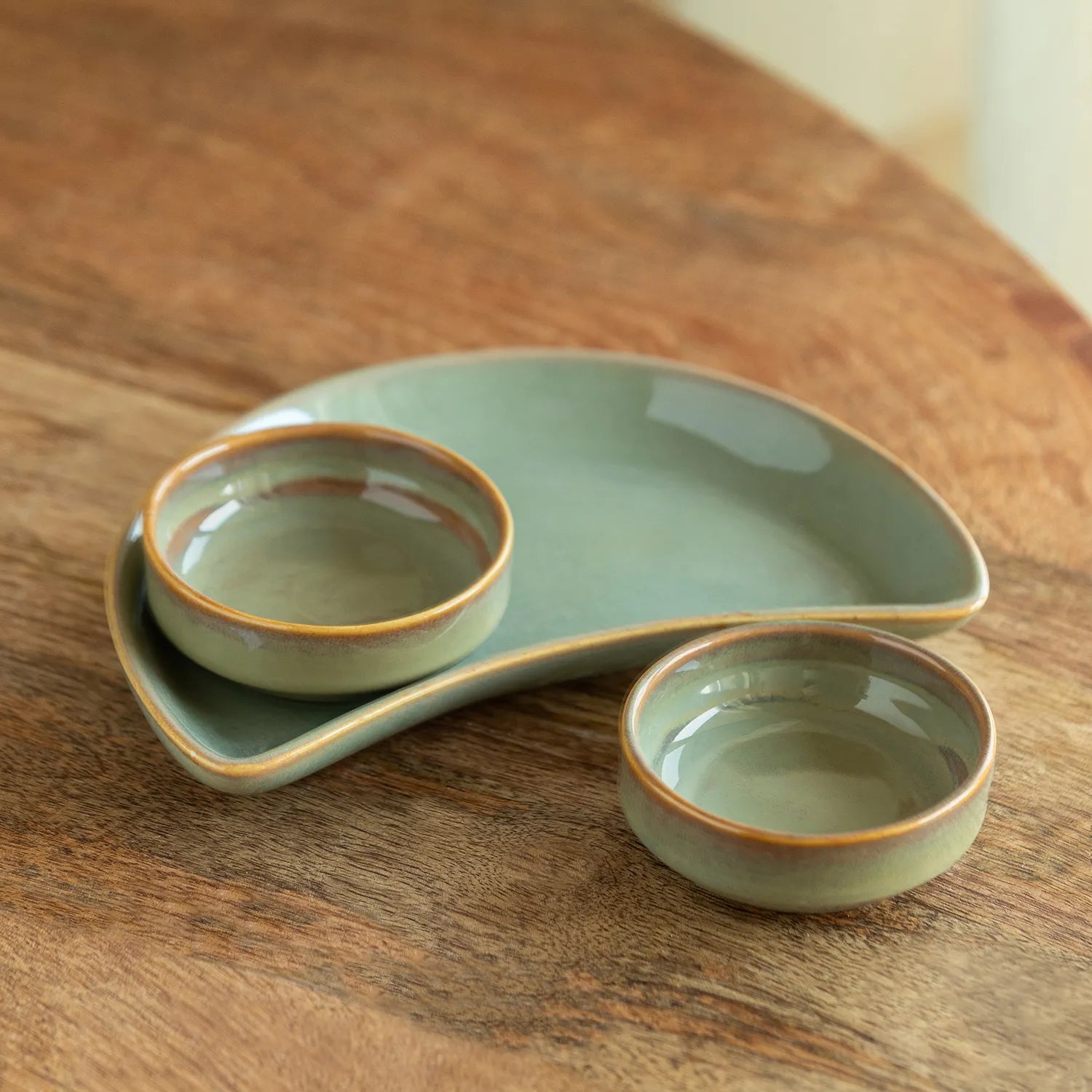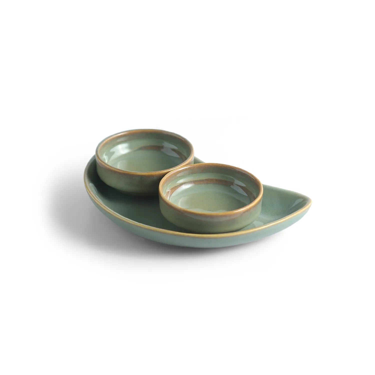 ExclusiveLane 'Sage Serenity' Porcelain Chutney & Pickle Bowls With Tray (Set Of 2, Microwave Safe, Handglazed)