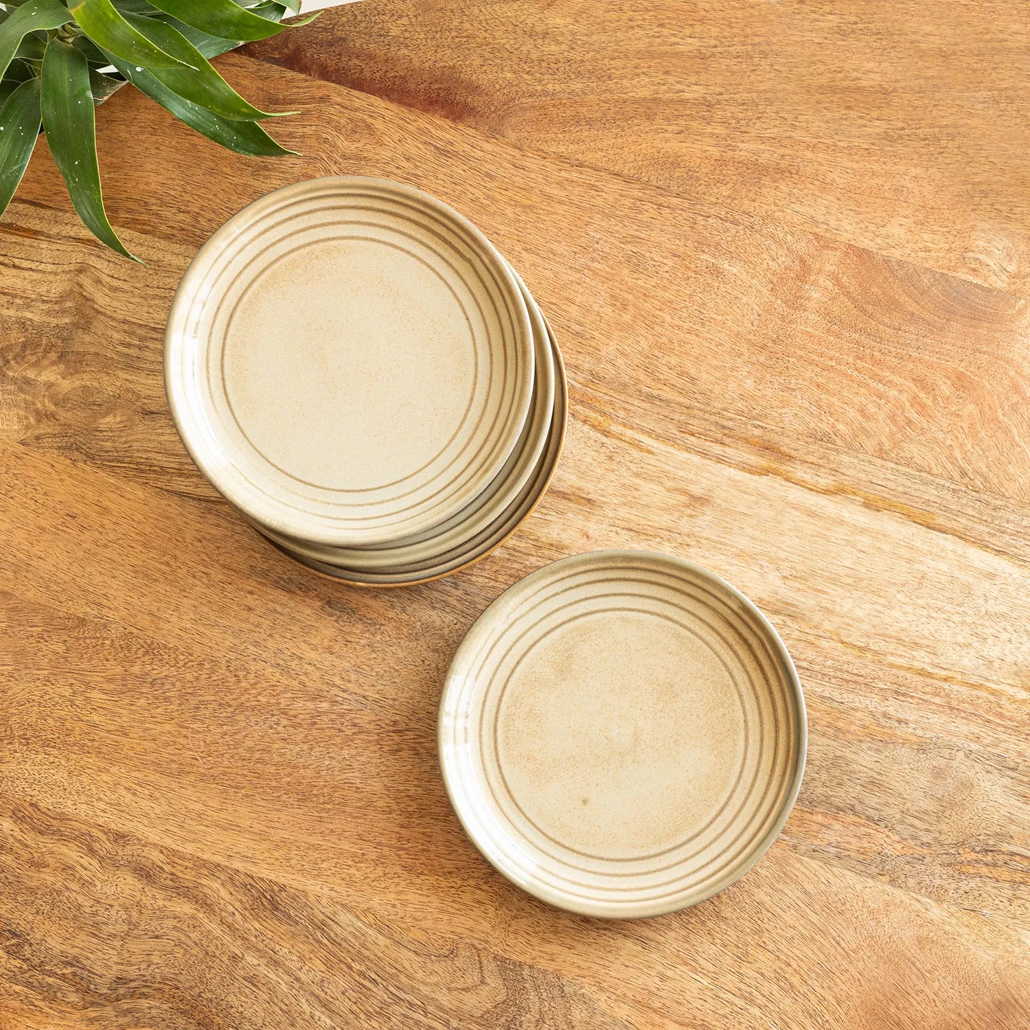 ExclusiveLane 'Wheat Serenity' Porcelain Quarter Plates (Set of 4, Microwave Safe, Hand Glazed