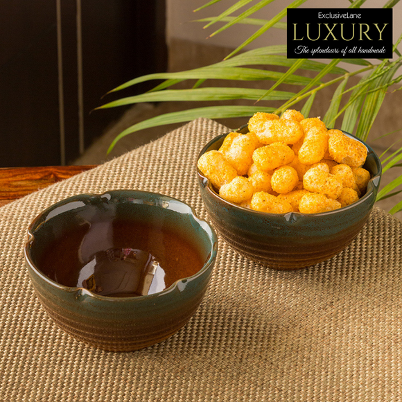 'Amber & Teal' Serving Bowls In Ceramic (Set Of 2)