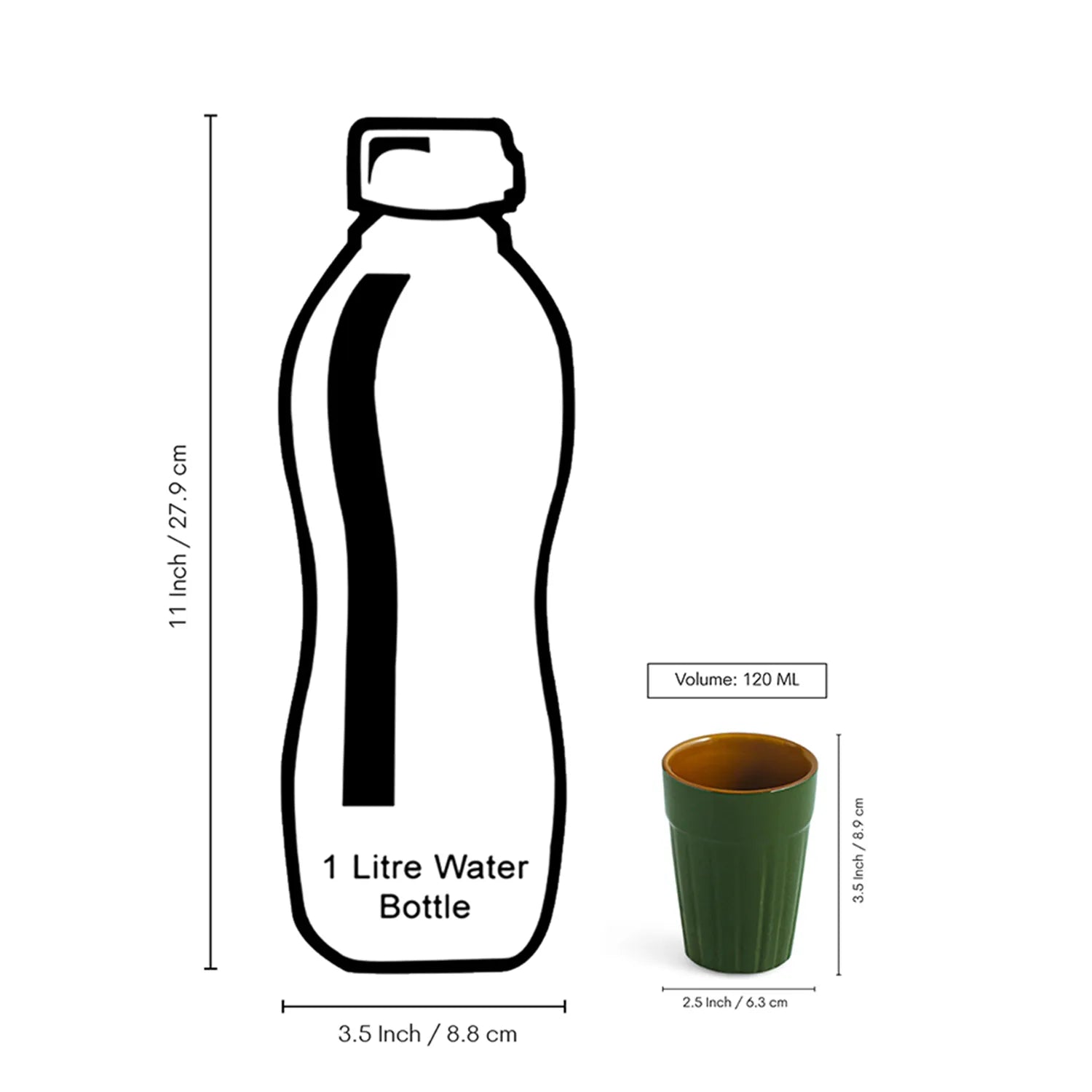 ExclusiveLane 'Forest Canopy' Ceramic Tea/Chai Glasses (Set of 6, 120 ML, Microwave Safe, Hand Glazed)