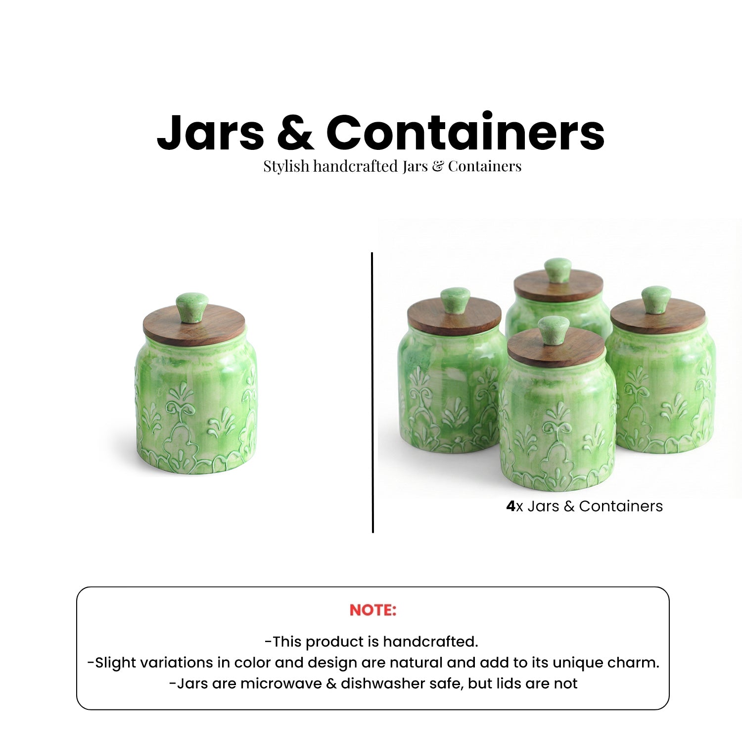 • MATERIAL: JARS: Ceramic, LIDS: Sheesham Wood, KNOB: Ceramic