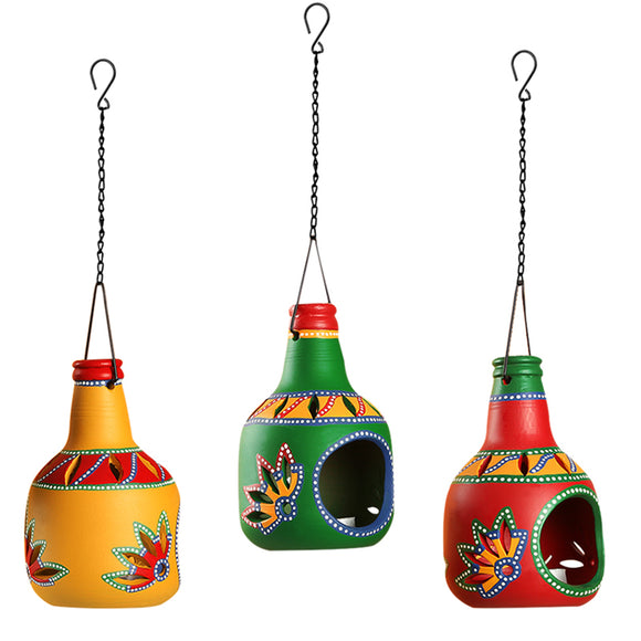 Golden Abstract' Hanging Tea-Light Holder In Iron