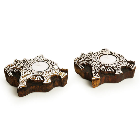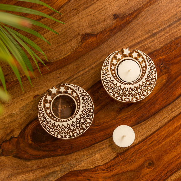 Jugnu Chakori' Wooden Tea Light Holder (Set of 2)