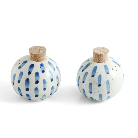 'The Hut' Ceramic Salt & Pepper Shakers Set With Iron Holder (Set of 2, 70 ml, Hand-Painted)