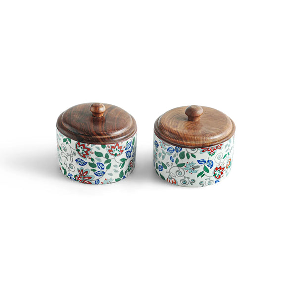 'Mughal Floral' Multi-Purpose Storage Jars & Containers In Ceramic (Air-Tight, Set of 2, 420 ml, Hand-Painted)