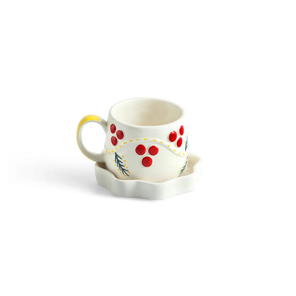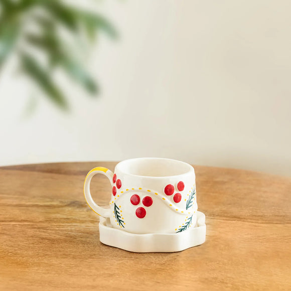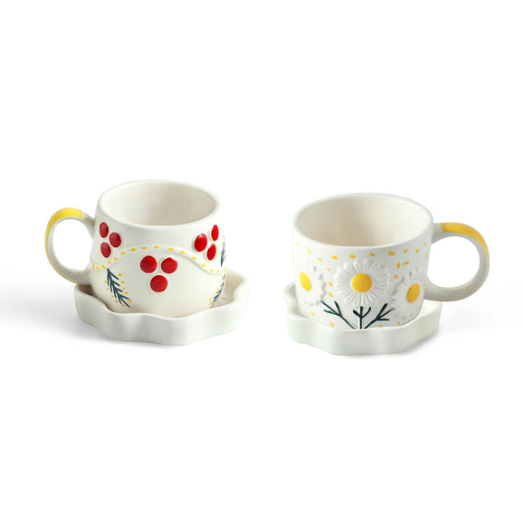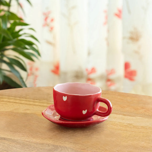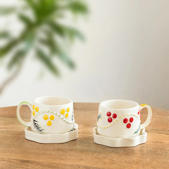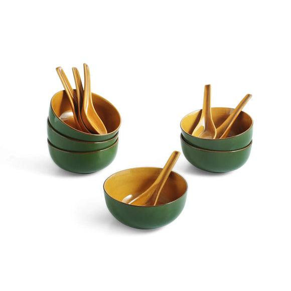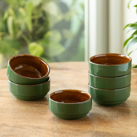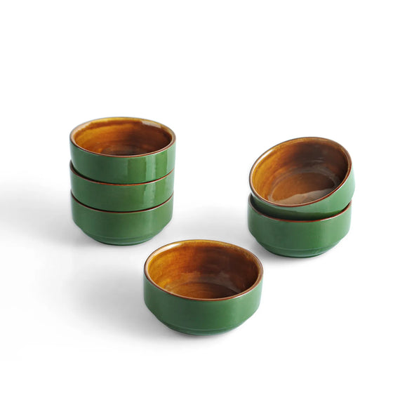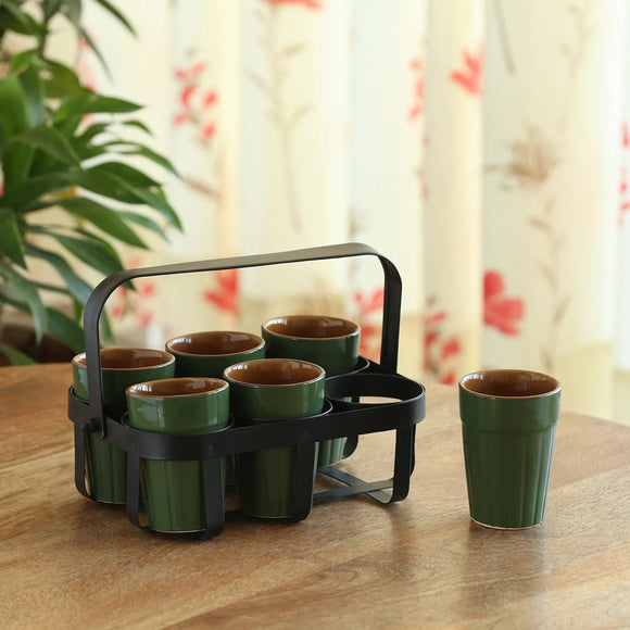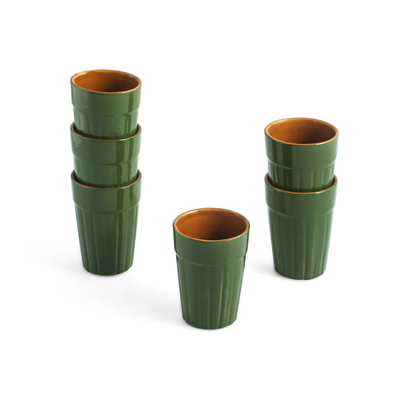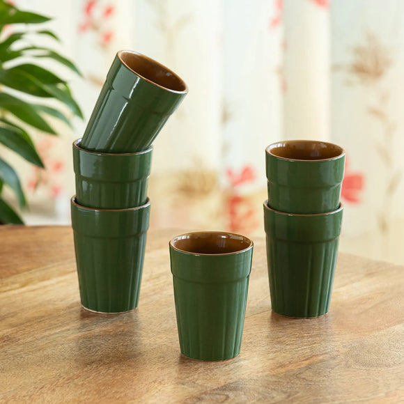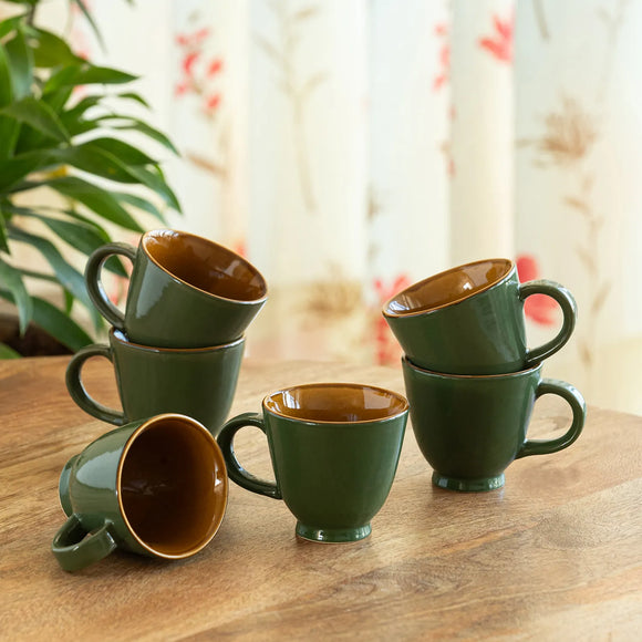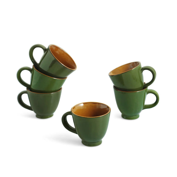 'Jade Forest' Hand Glazed Ceramic Tea Cups & Saucers (Set of 6, 120 ml, Microwave Safe)