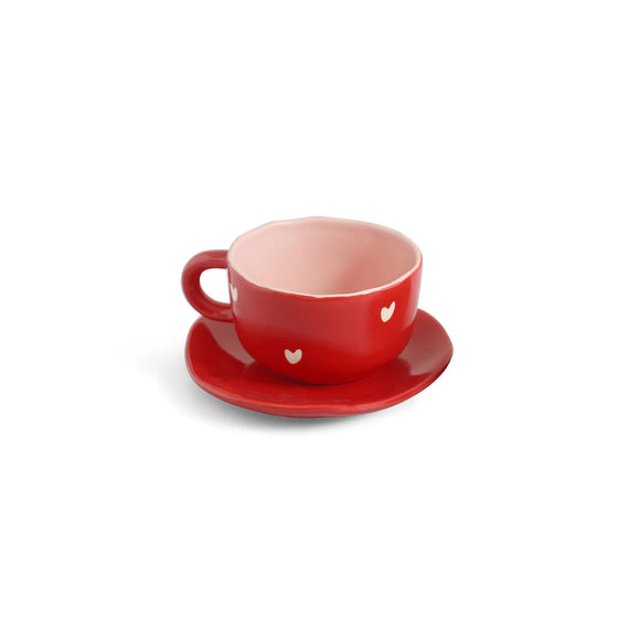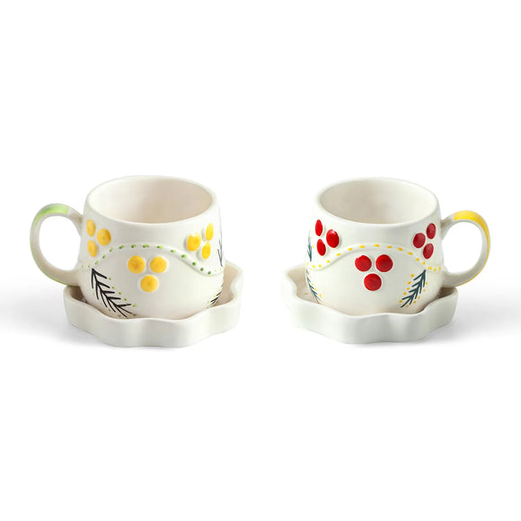 'Moroccan Essentials' Hand-Painted Ceramic Tea Cups & Saucers (Set of 6, 120 ml, Microwave Safe)