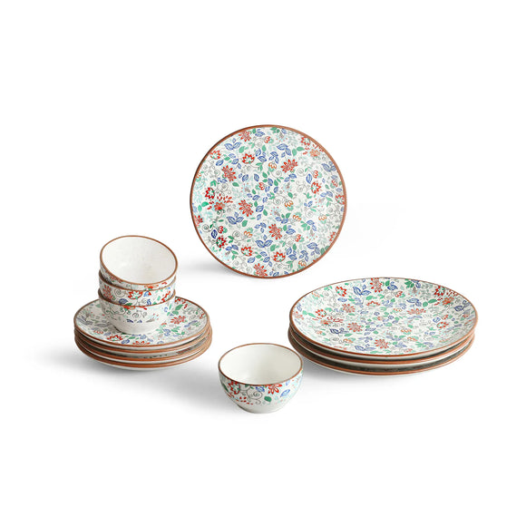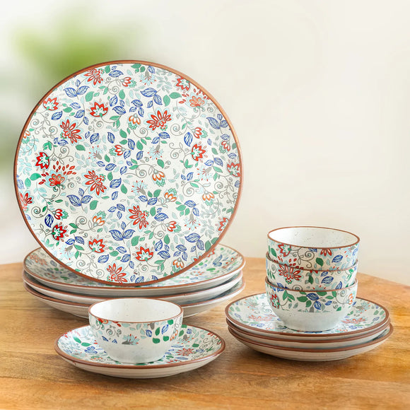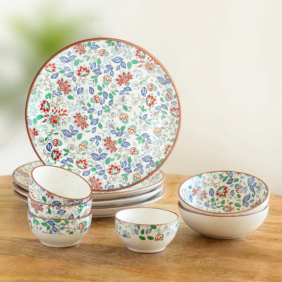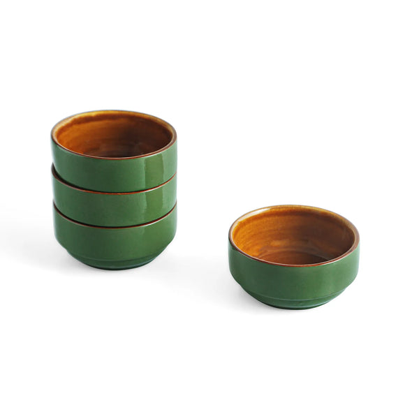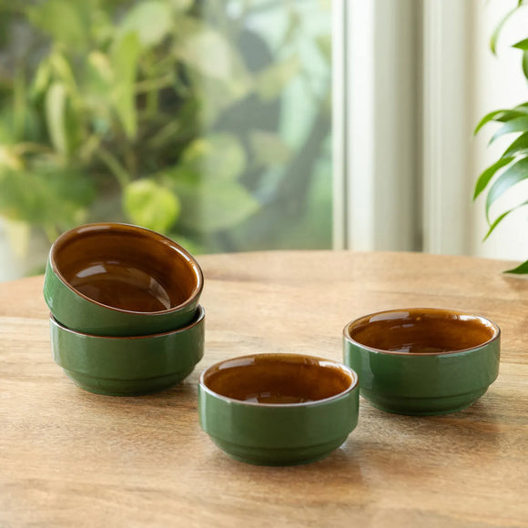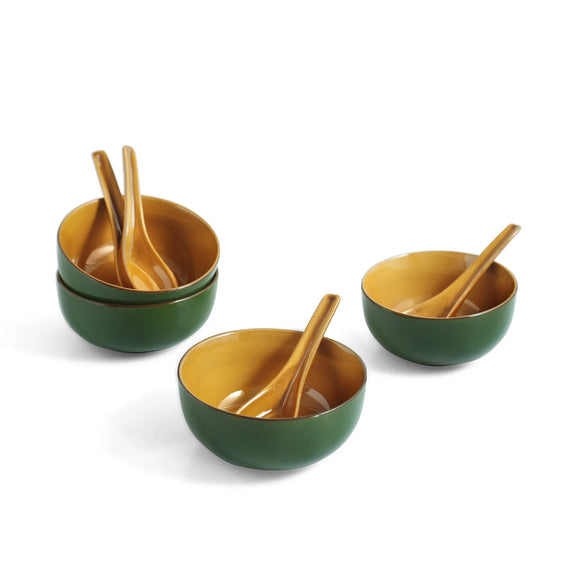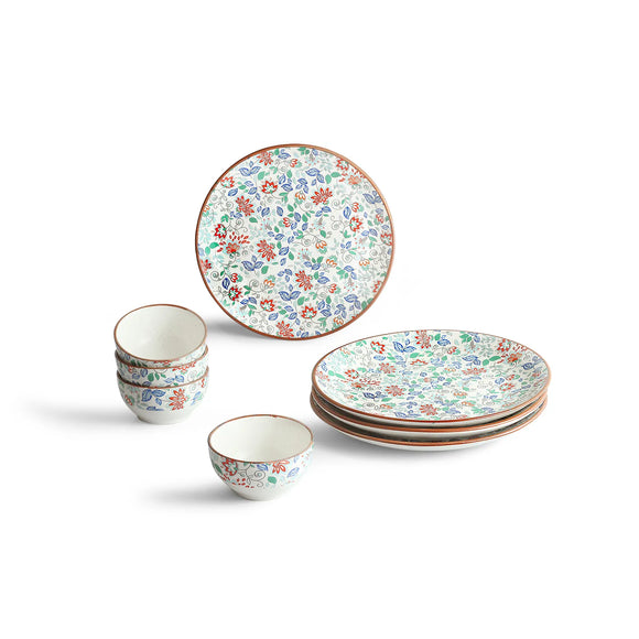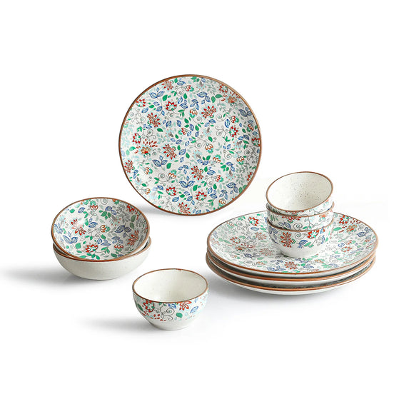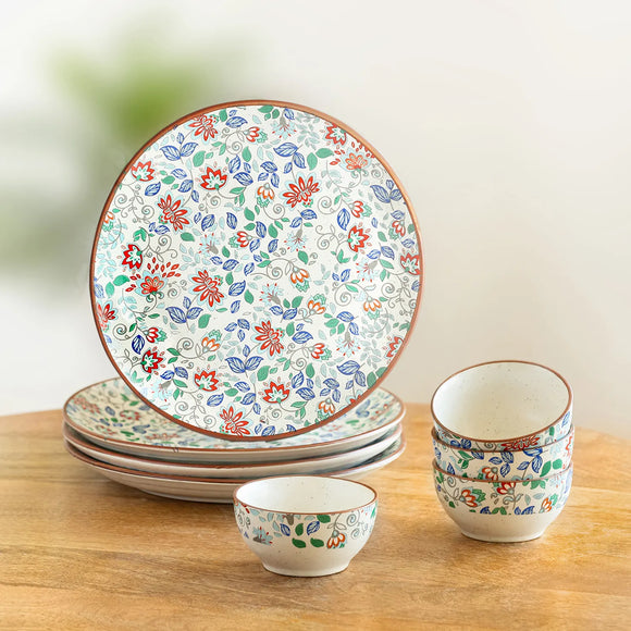 'Zen Garden' Hand Glazed Ceramic Dinner Plates With Dinner Katoris (8 Pieces, Serving for 4, Microwave Safe)