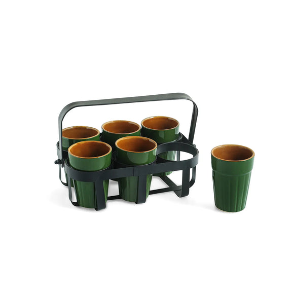 'Rail Express' Chai/Tea Glasses With Iron Holder (6 Glasses)