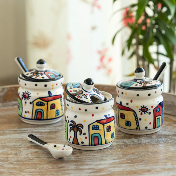 TRAY & SPOONS: Sheesham Wood, JAR: Ceramic