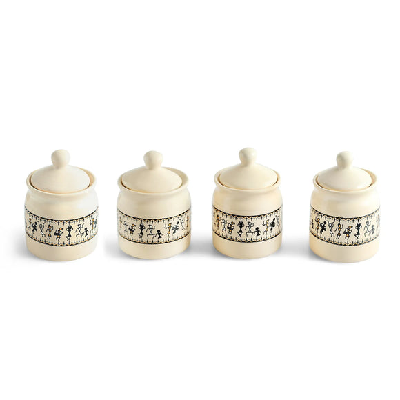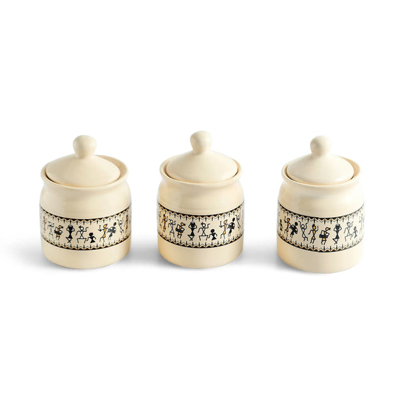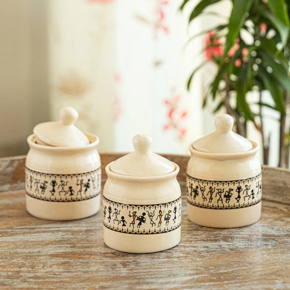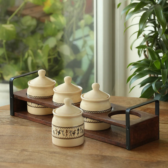 Old Fashioned Ceramic Jars With Hand Carved Tray
