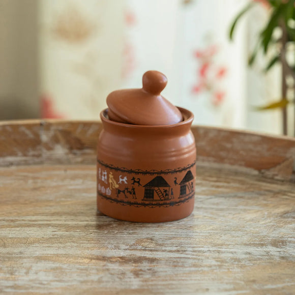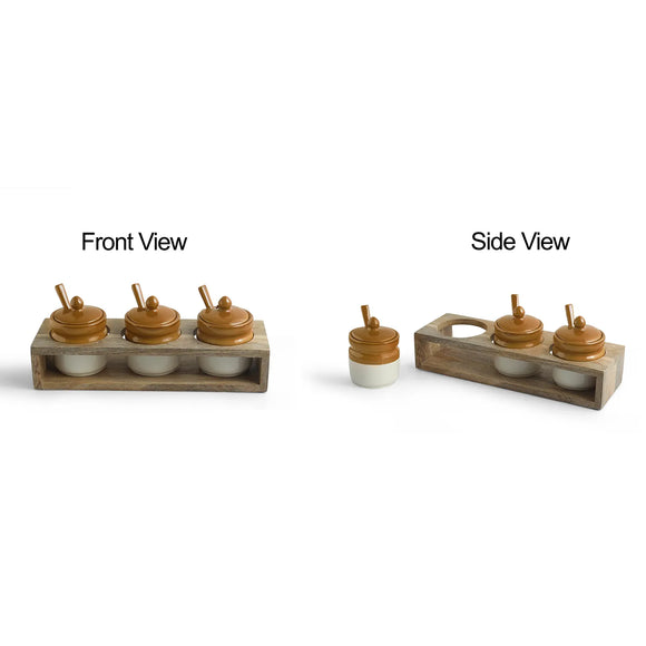 - resting on sheeham wood tray is inspired from old indian era. This multipurpose jar and tray finds good use in serving chutney, pickles, sauces etc.