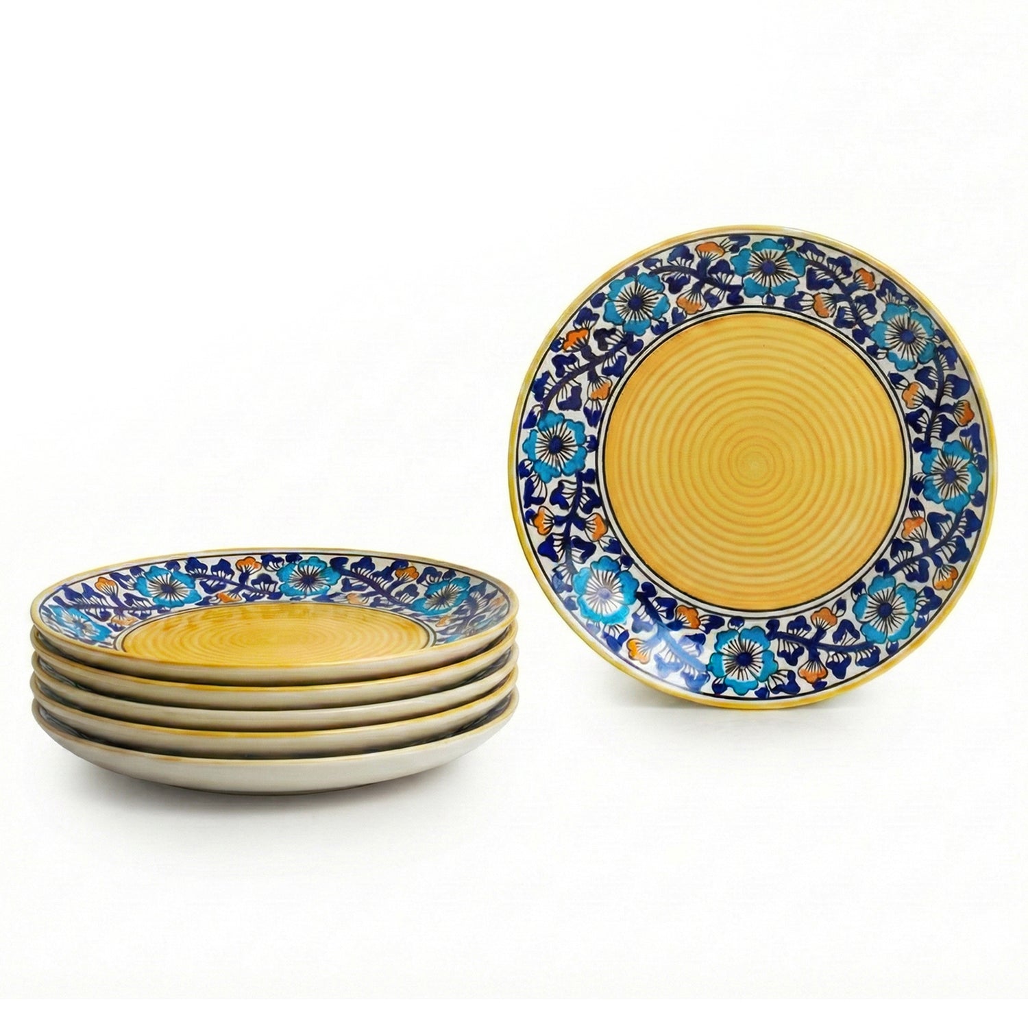 'Badamwari Bagh' Hand-Painted Ceramic Dinner Plates (Set of 6, Microwave Safe)