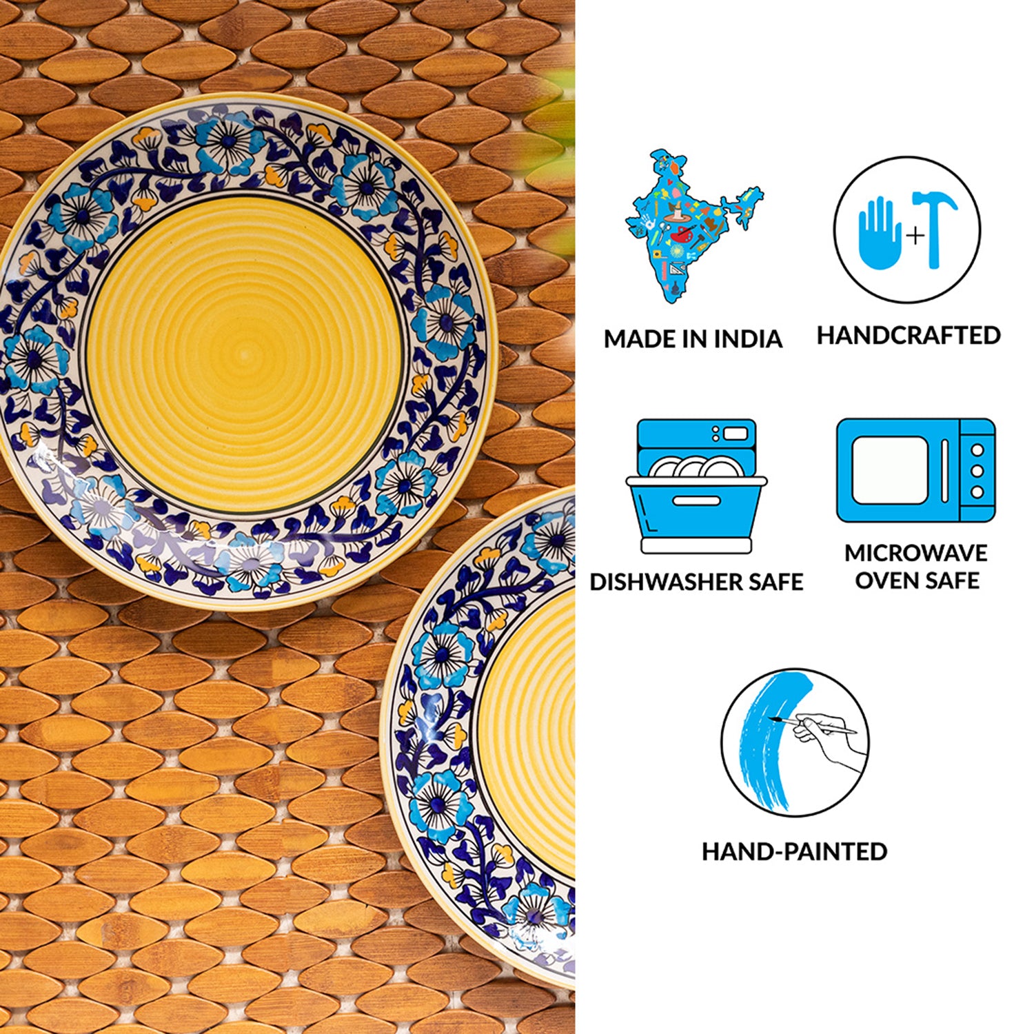 - ART FORM: Hand-Painted & Handcrafted depicting floral motifs
