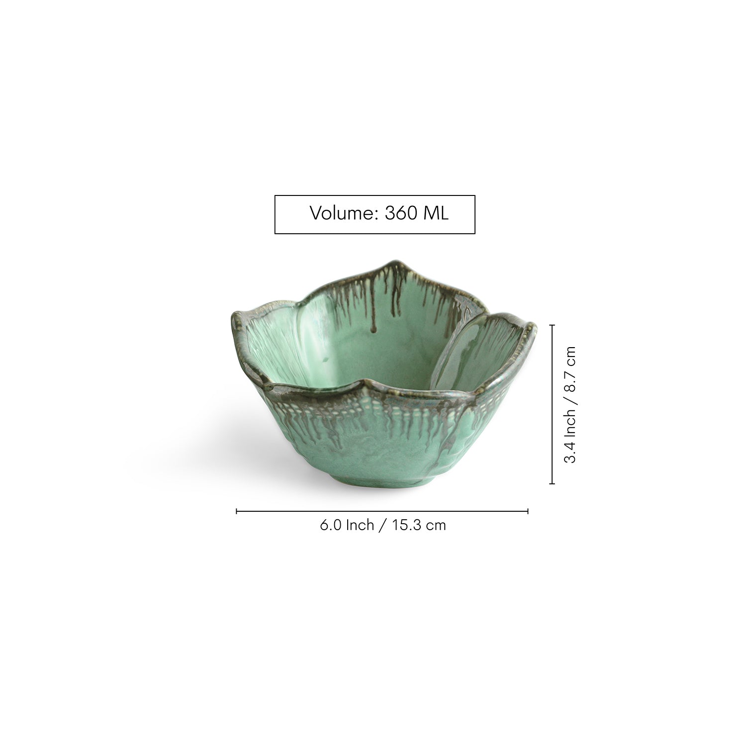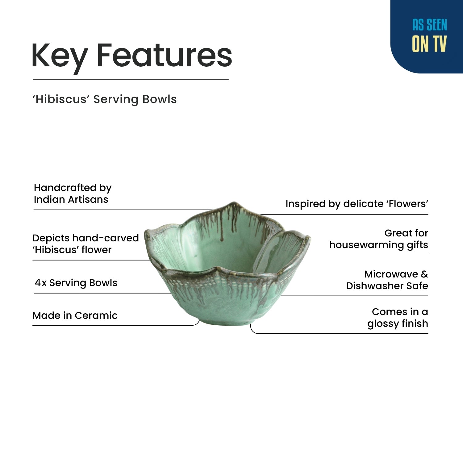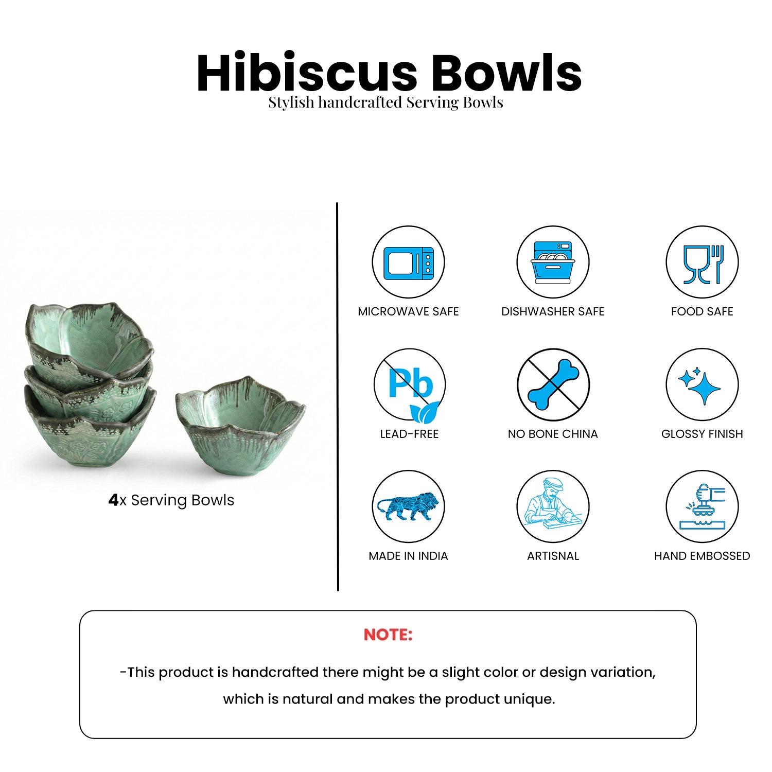 'Hibiscus Bowls' Ceramic Serving/Snack Bowls (Set Of 4, 360 ML, Hand-Embossed)