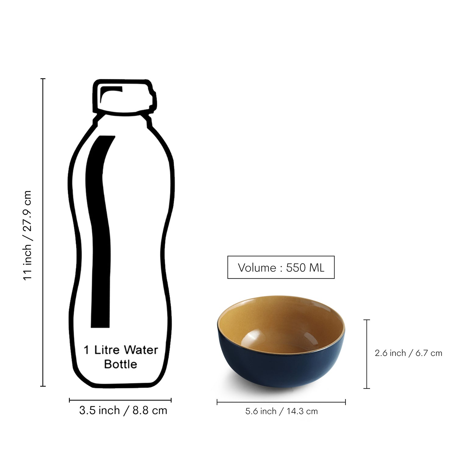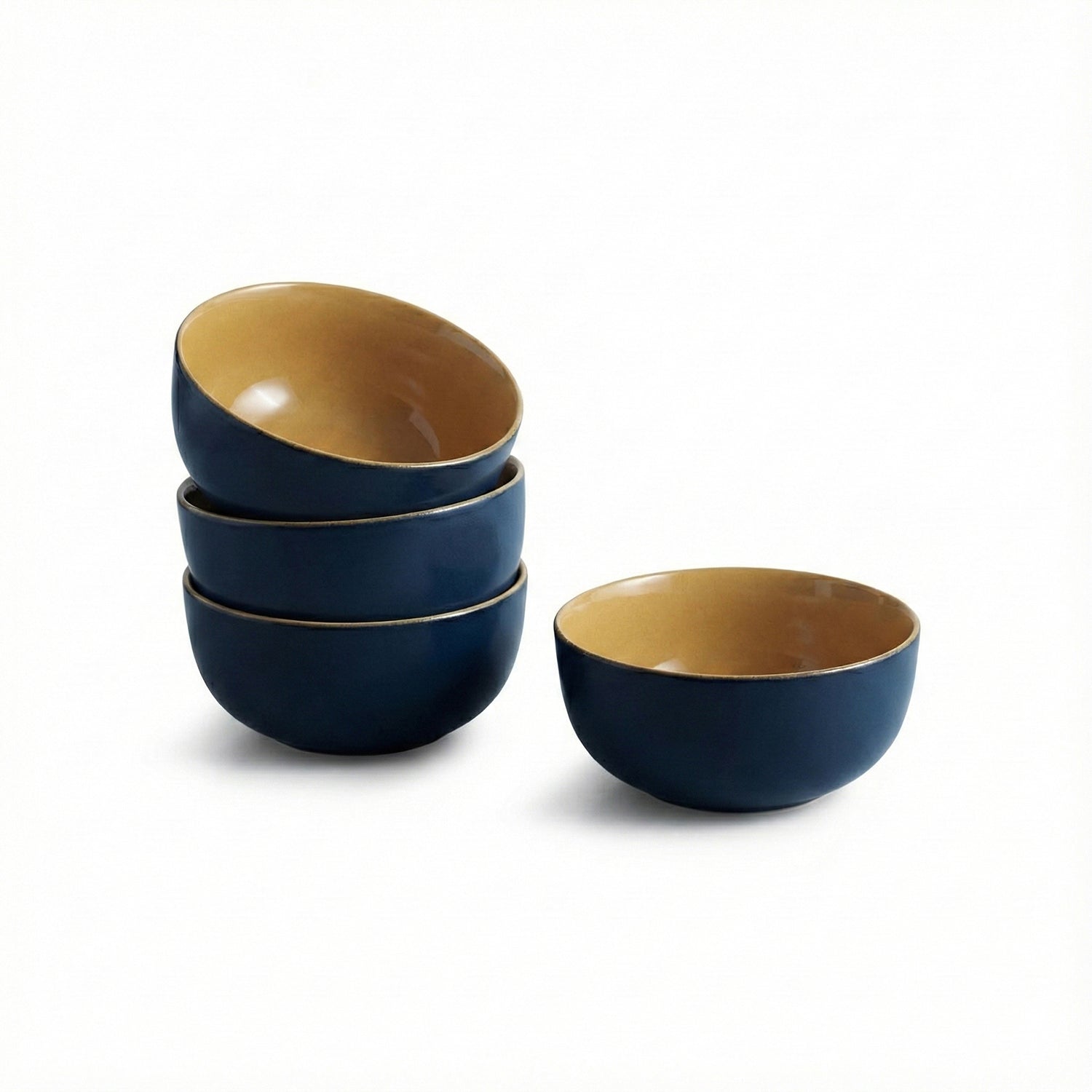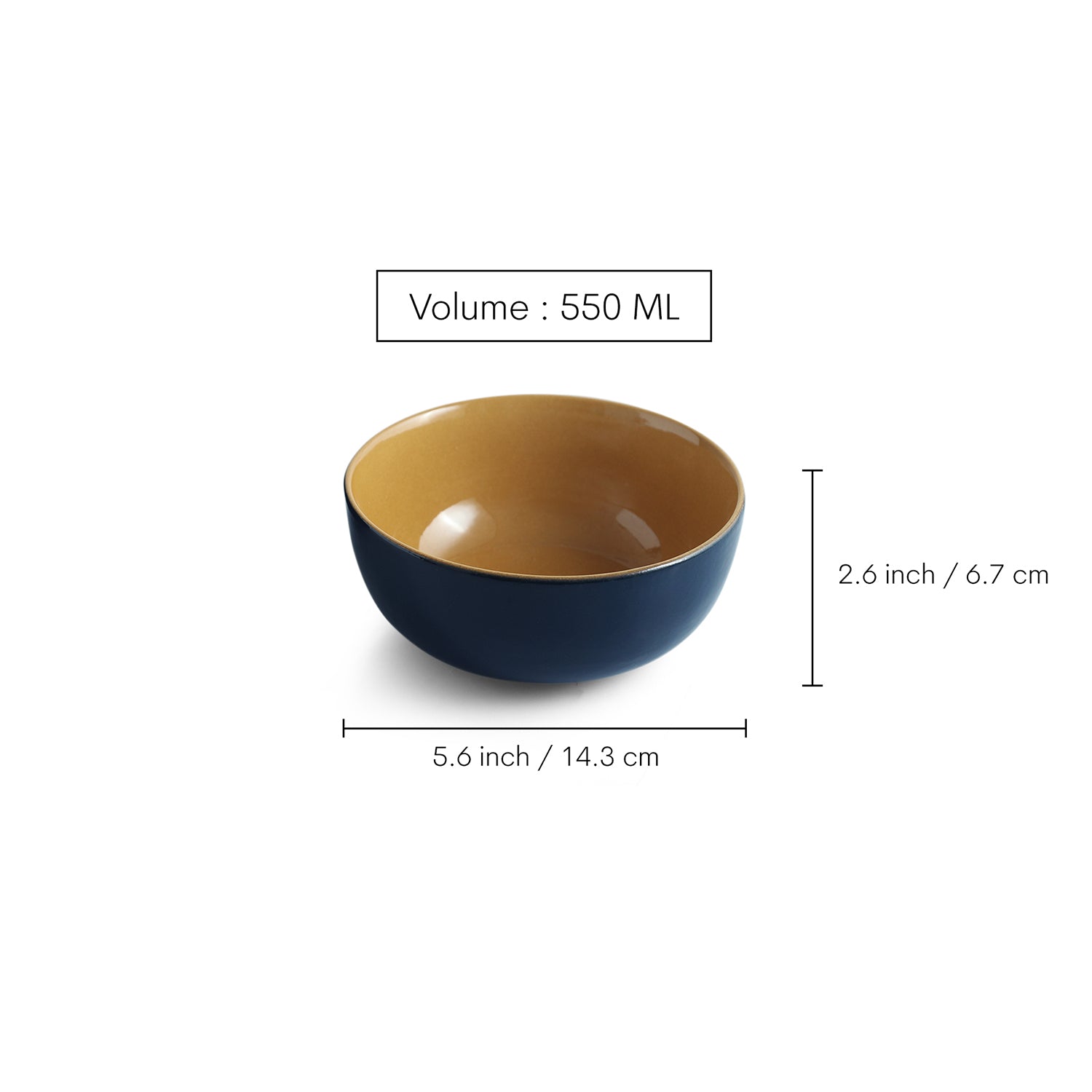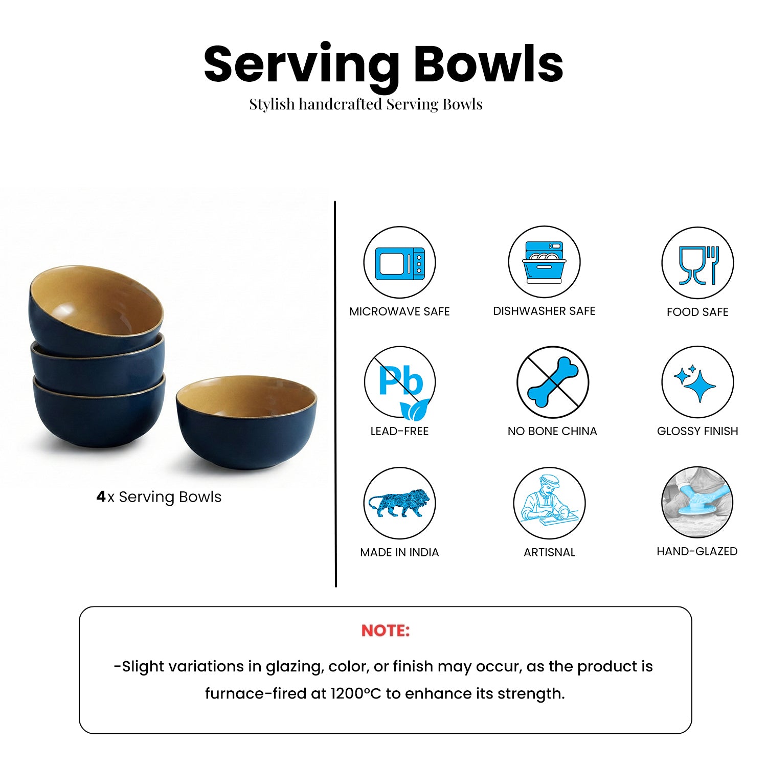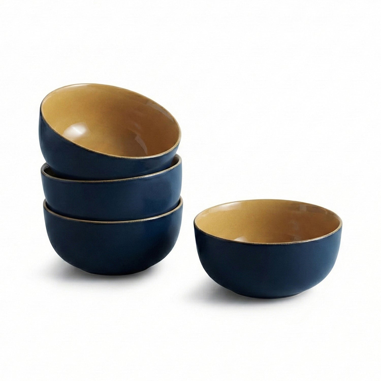 'Mariana Blues' Ceramic Serving/Snack Bowls (Set Of 4, 550 ML, Microwave Safe, Hand Glazed)