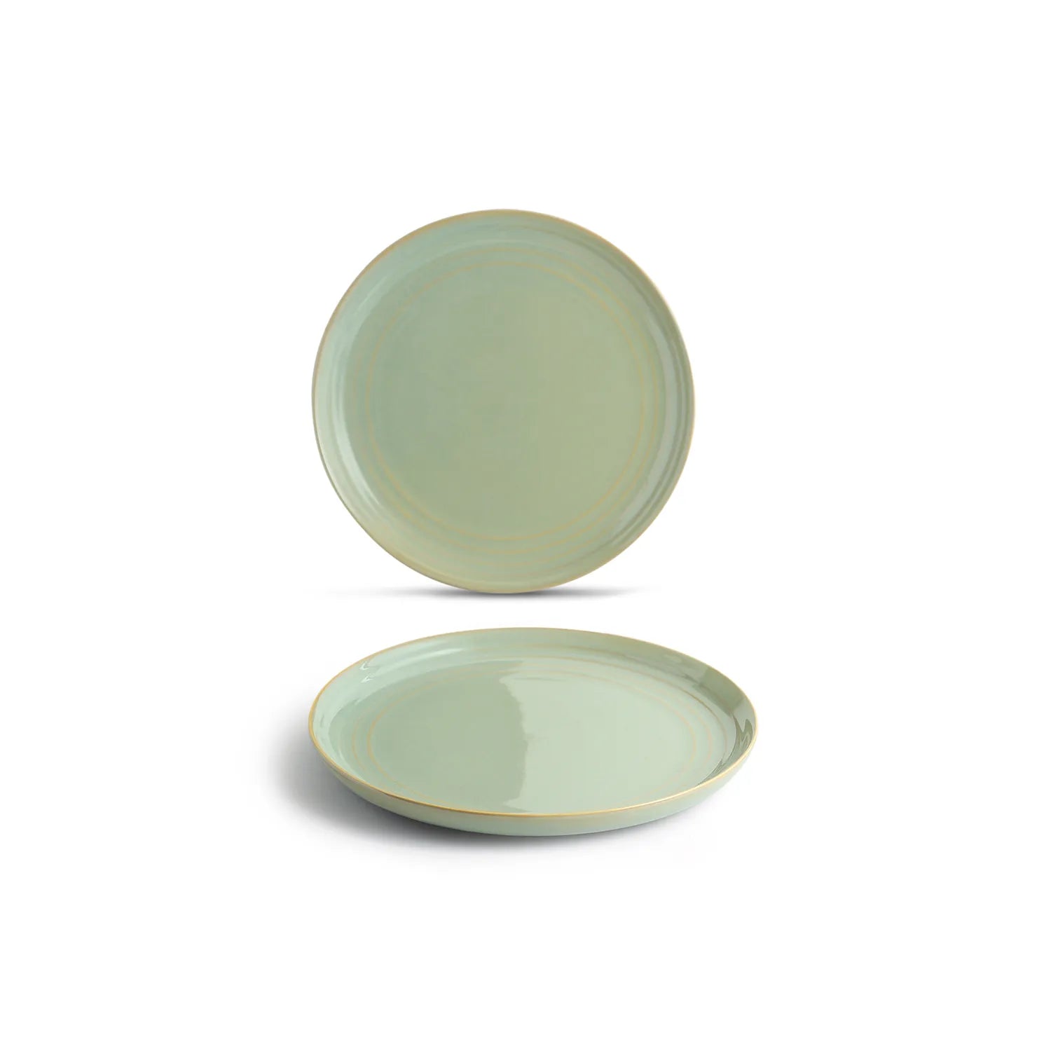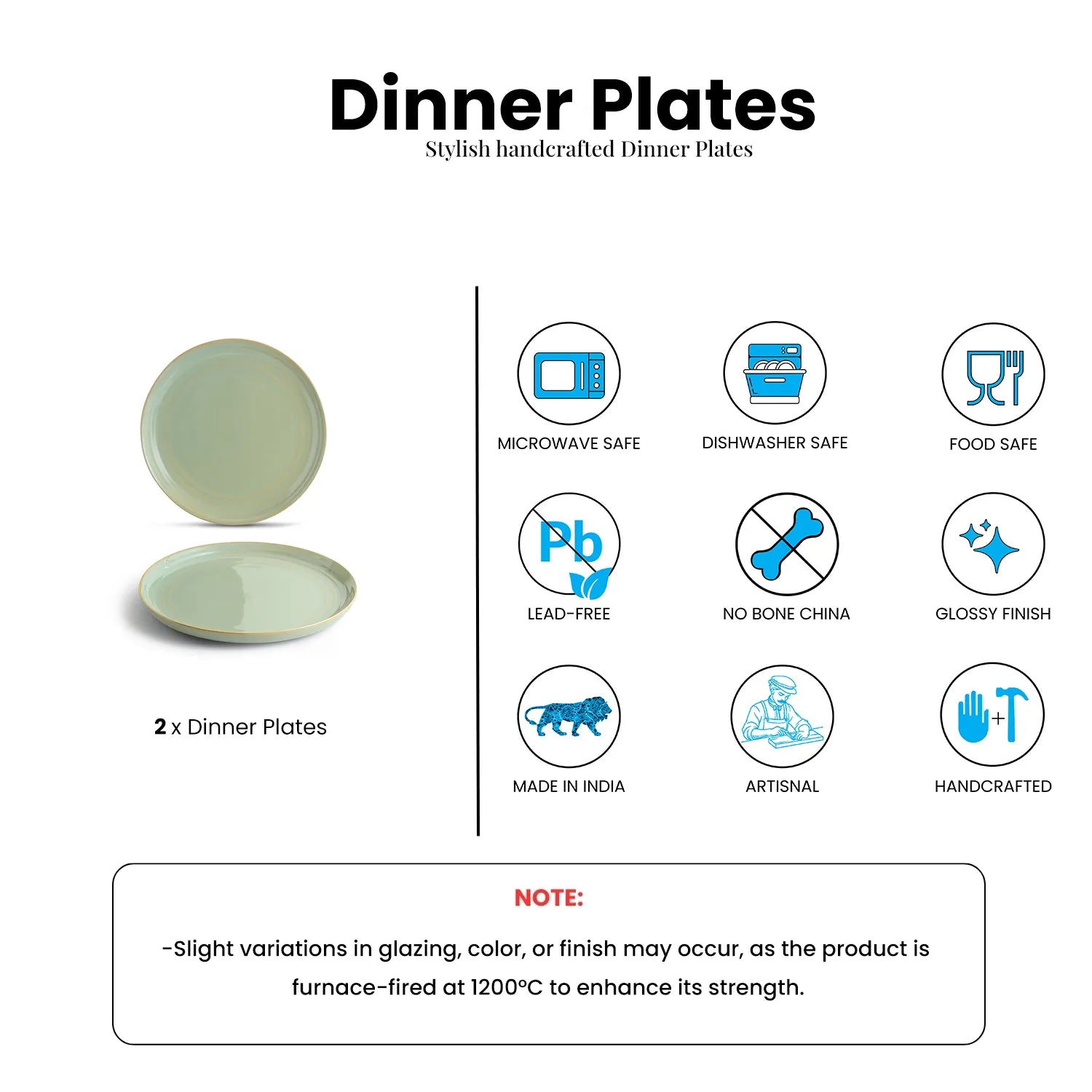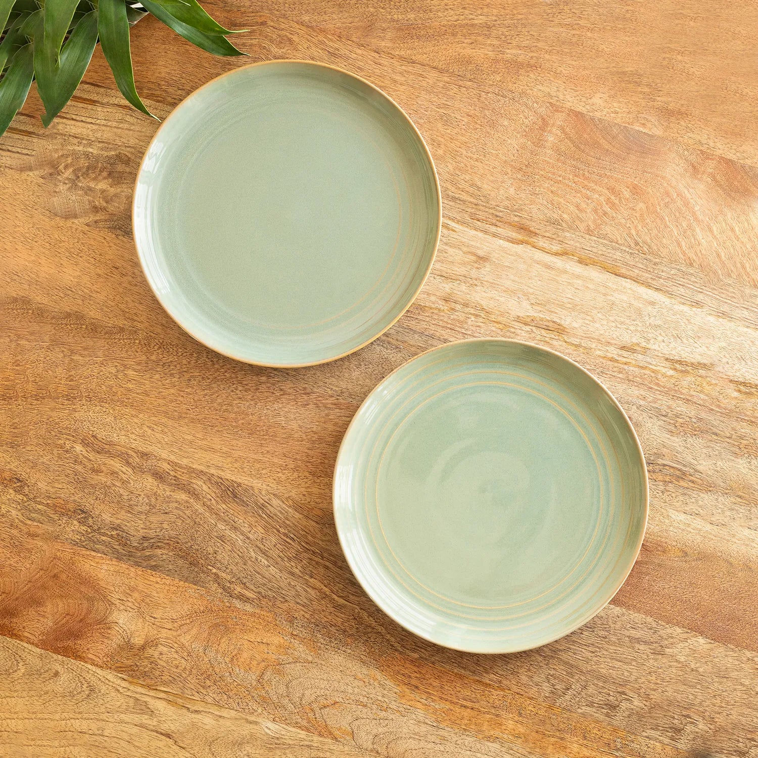 ExclusiveLane 'Sage Serenity' Porcelain Dinner Plates (Set of 2, Microwave Safe, Hand Glazed)