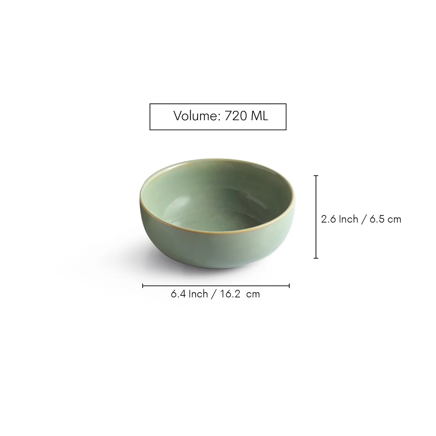 ExclusiveLane 'Sage Serenity' Porcelain Serving/Snack Bowls (Set Of 2, 720 ML, Hand Glazed)