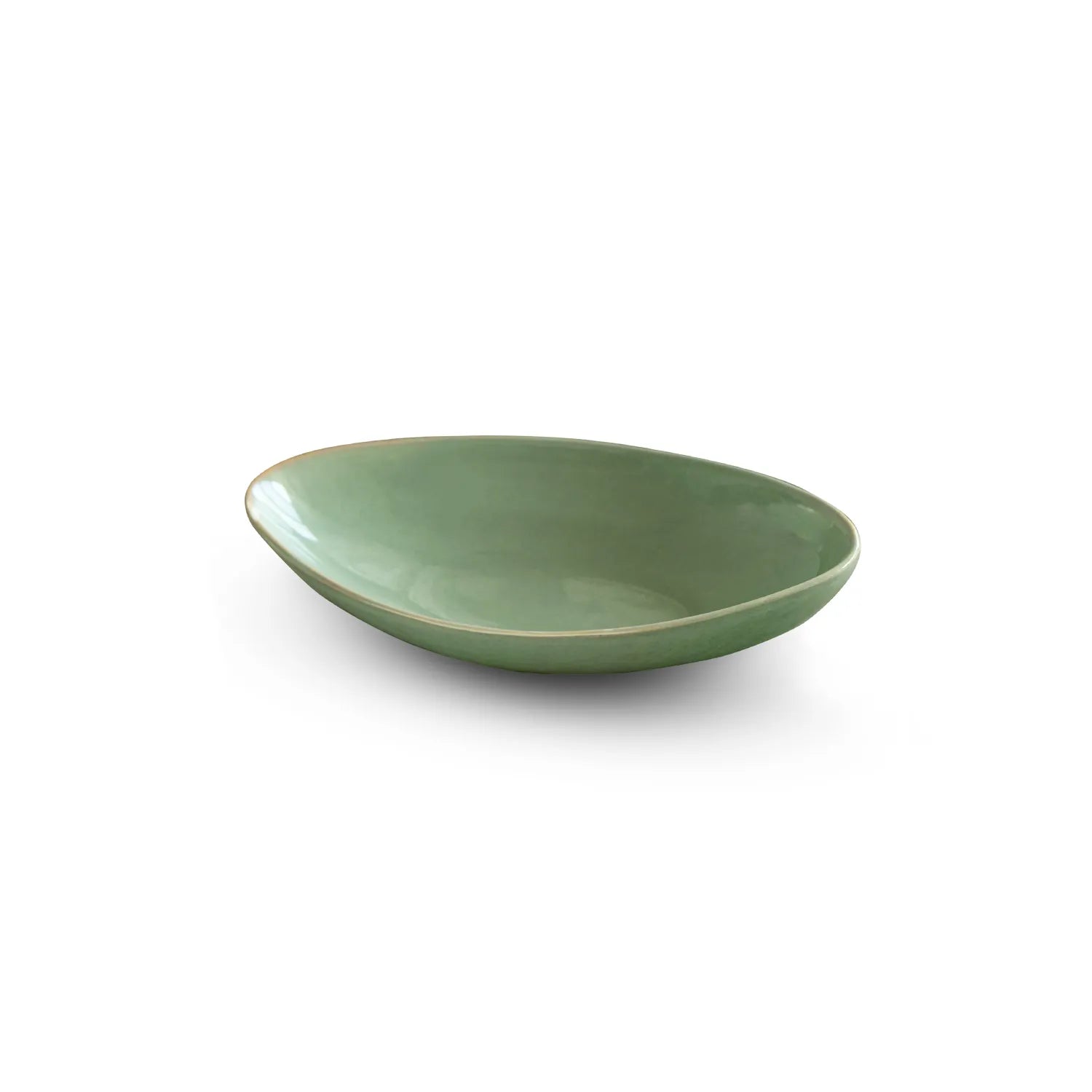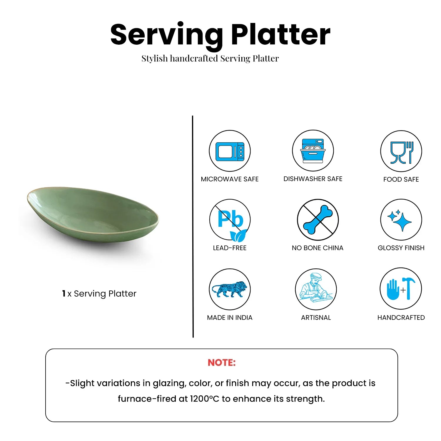 ExclusiveLane 'Sage Serenity' Porcelain Serving Platter (Microwave Safe, Hand Glazed)