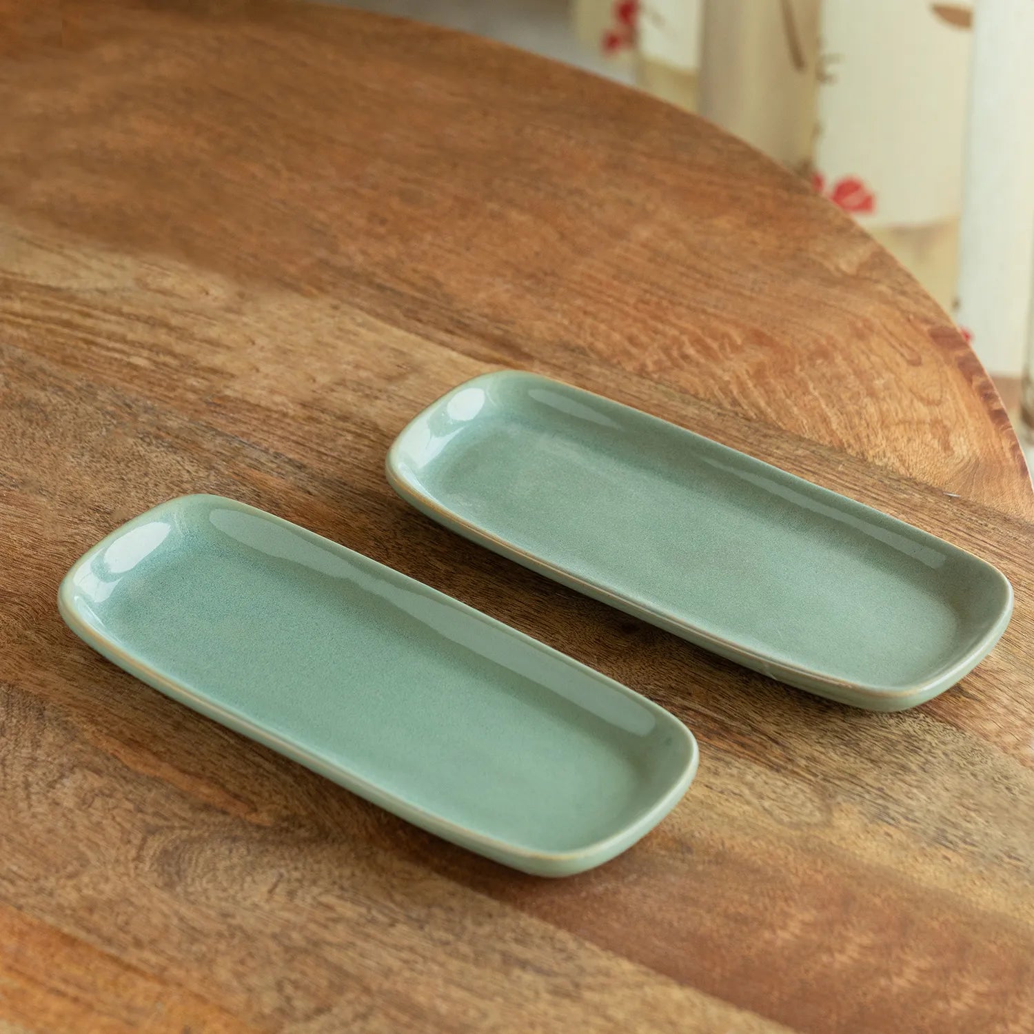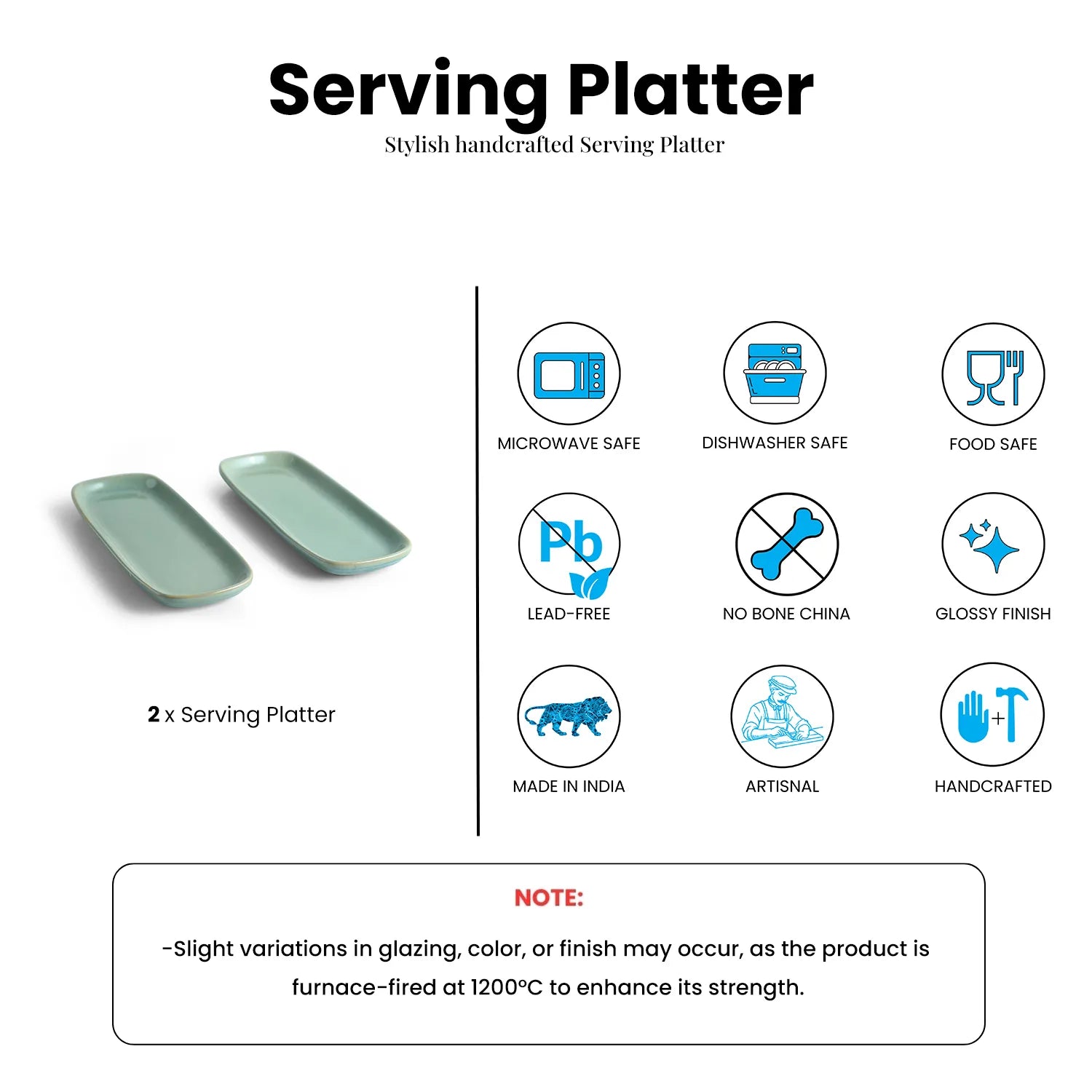 ExclusiveLane 'Sage Serenity' Porcelain Serving Platters (Set Of 2, Microwave Safe, Hand Glazed)