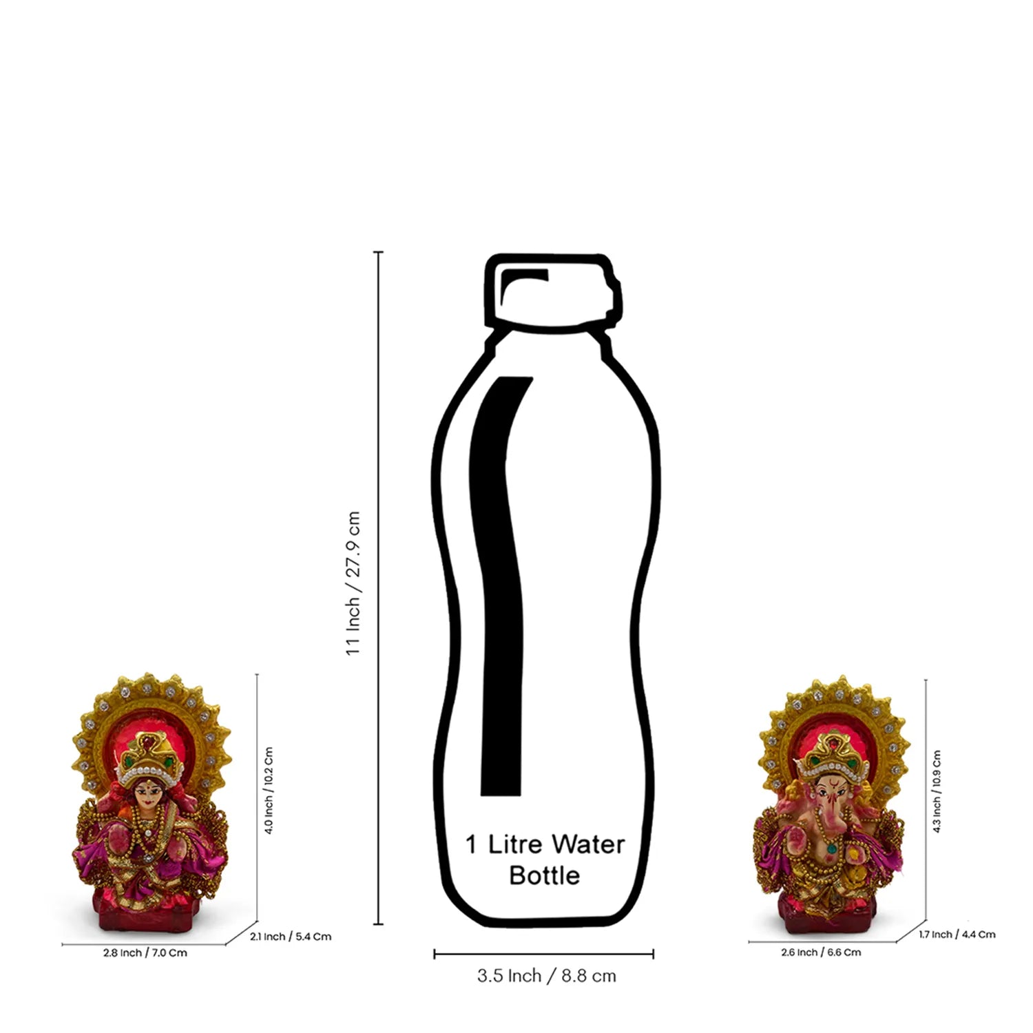 GANESHA: (L * W * H ) = (6.6 * 4.4 * 10.9), LAKSHMI: (L * W * H) = (7 * 5.4 * 10.2) Cm