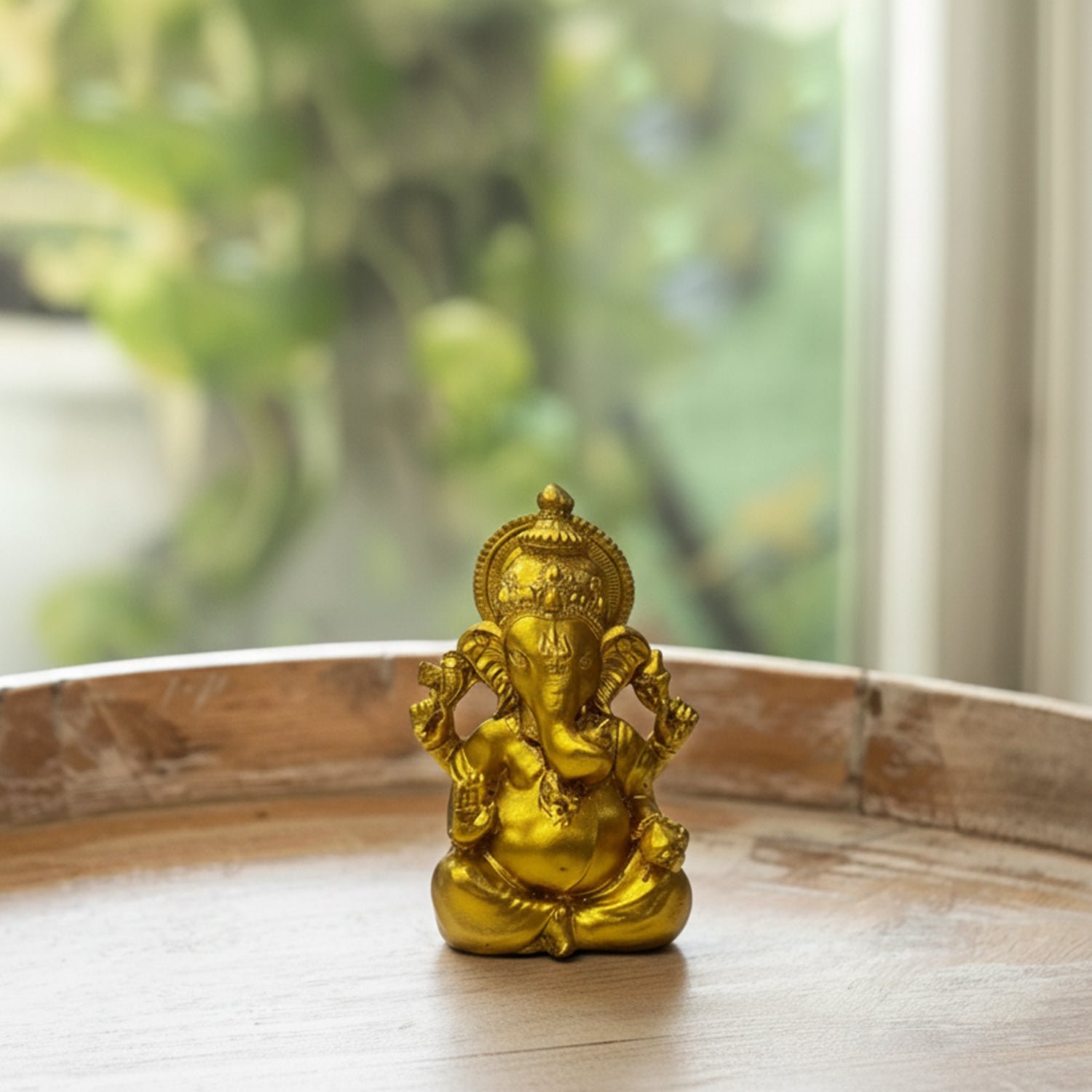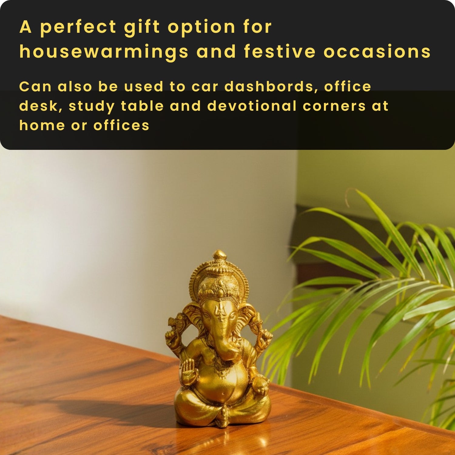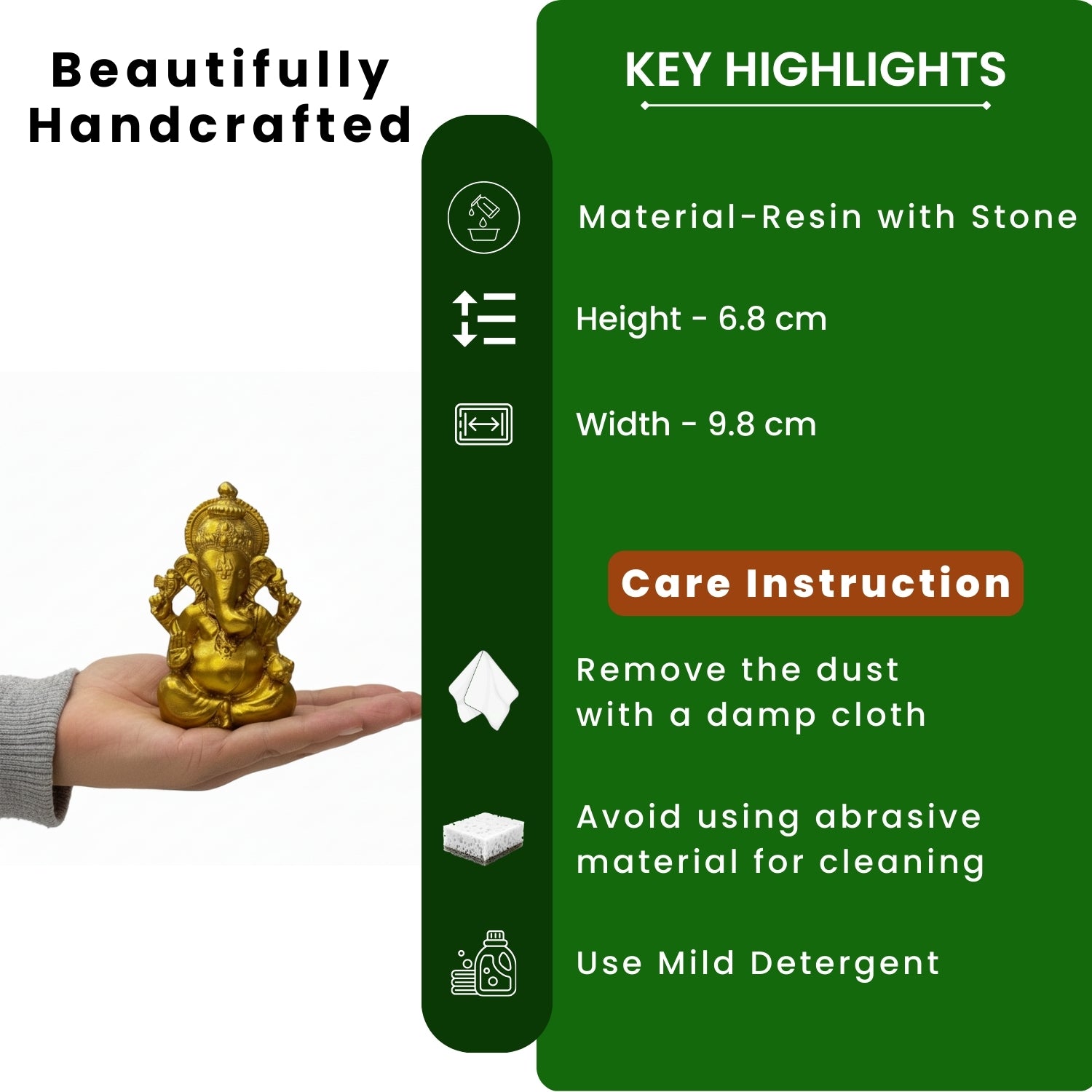 'Divine Car Ganesha's Grace' Idol Decorative Showpiece Figurine (Resin, Hand-Crafted, 9.8 Cm)